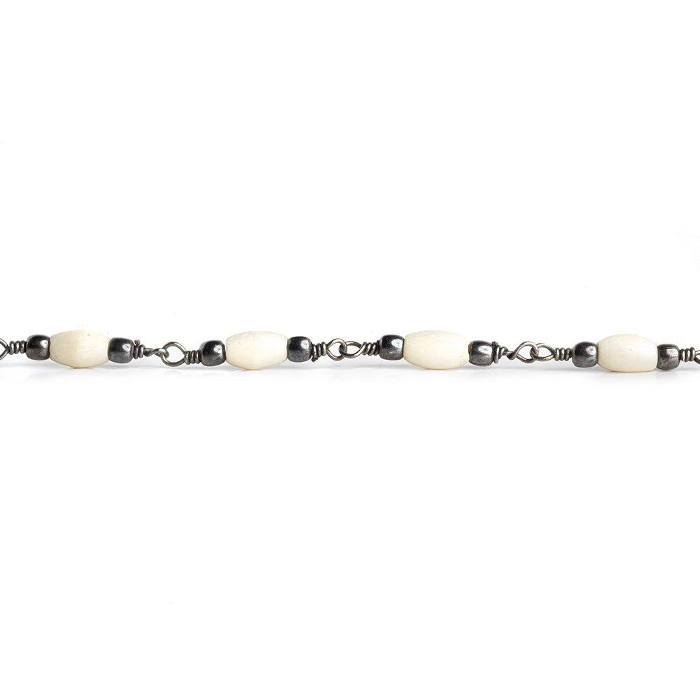 10x5mm White Ox Bone Tubes Black Gold Plated Cap and Chain by the Foot 17 pieces - The Bead Traders