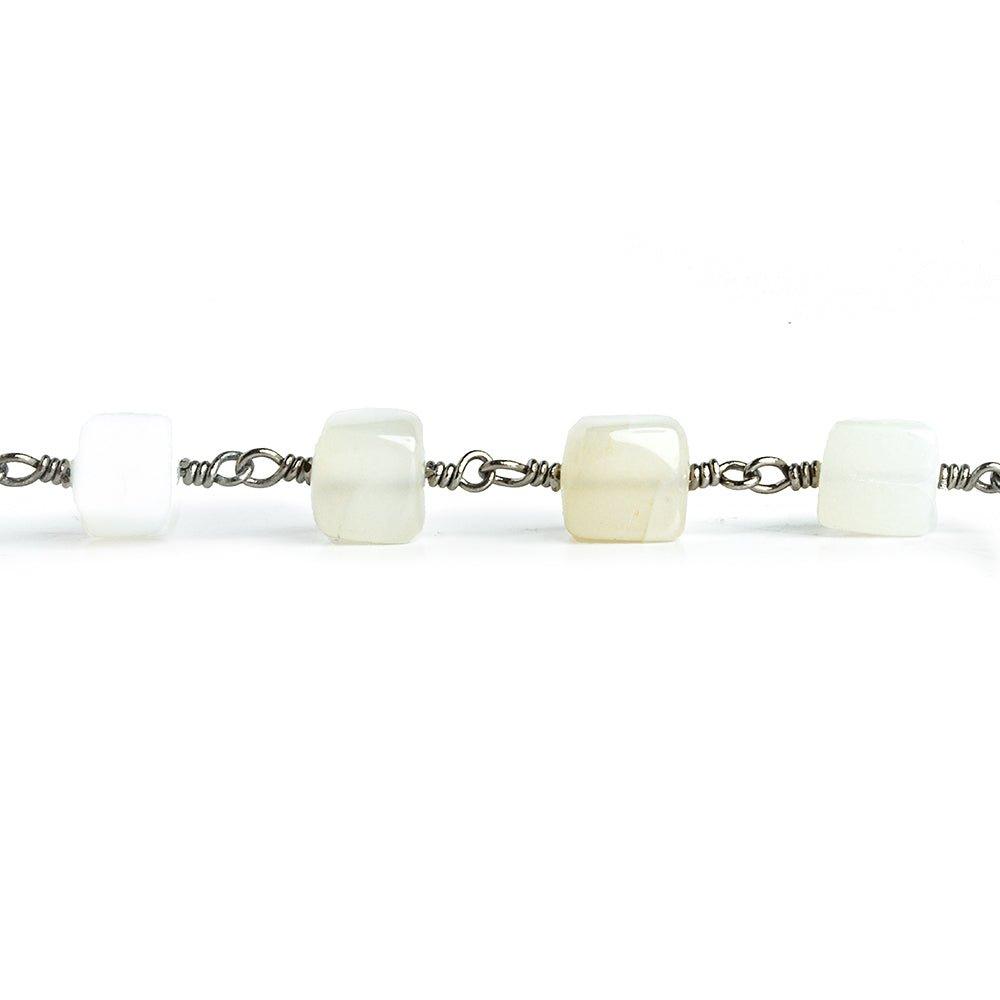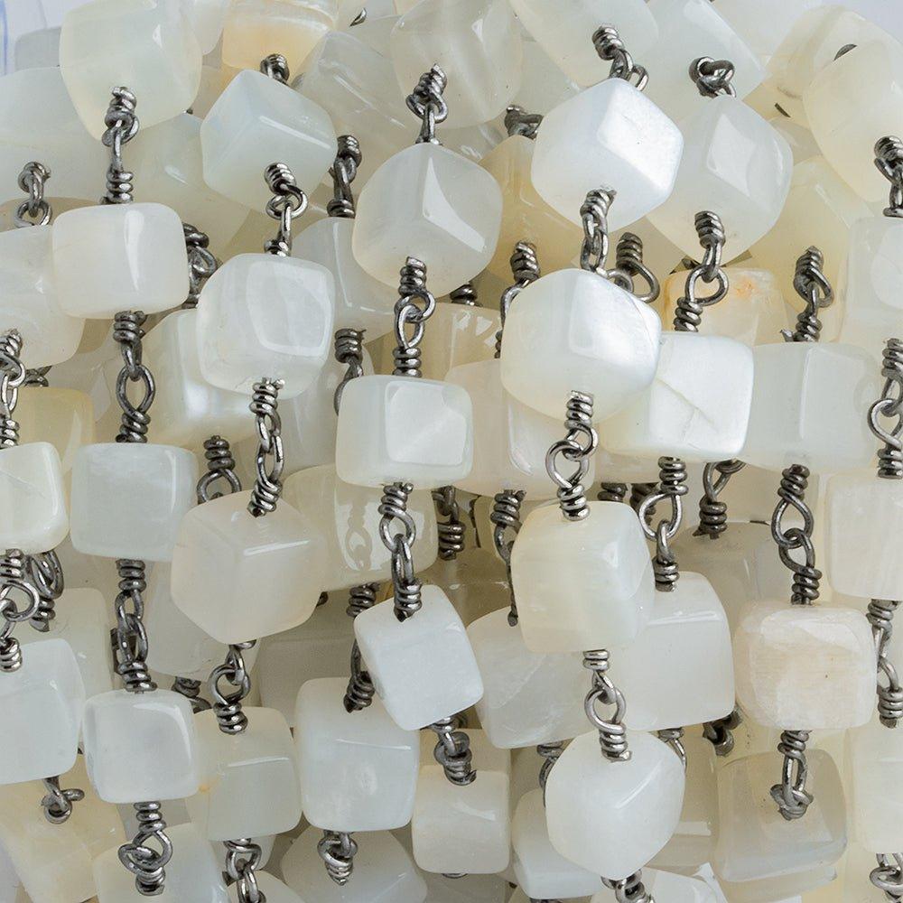 White Moonstone Plain Cube Black Gold Chain by the Foot 21 pieces - The Bead Traders