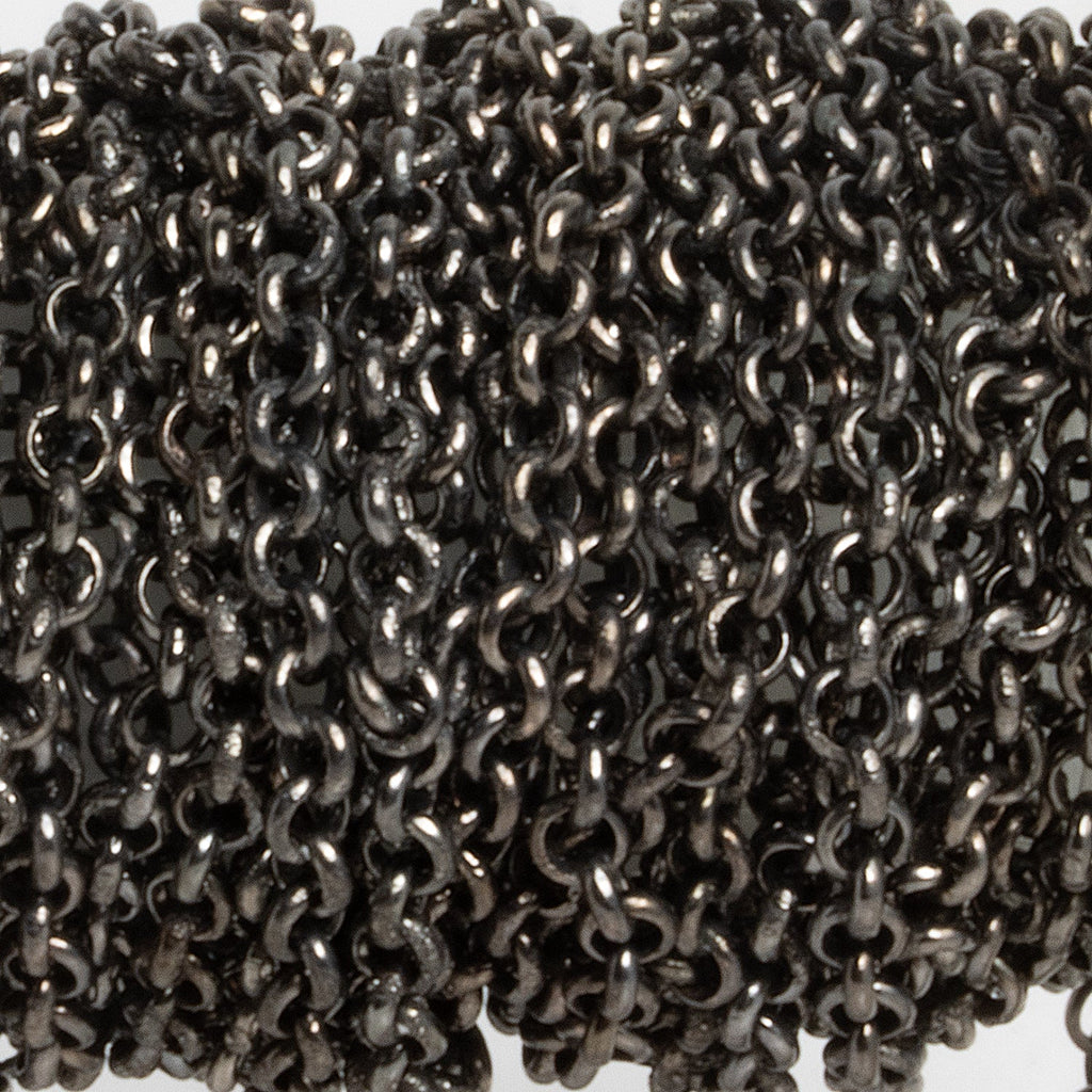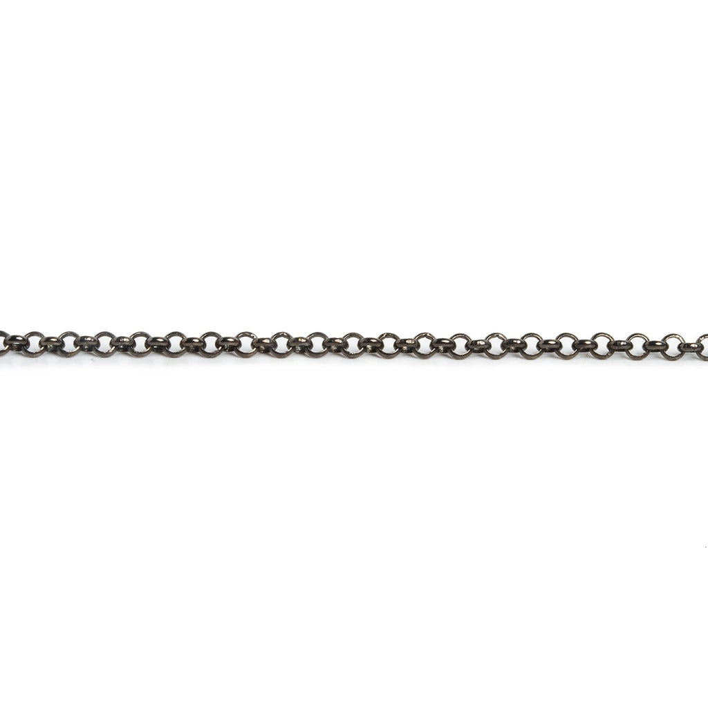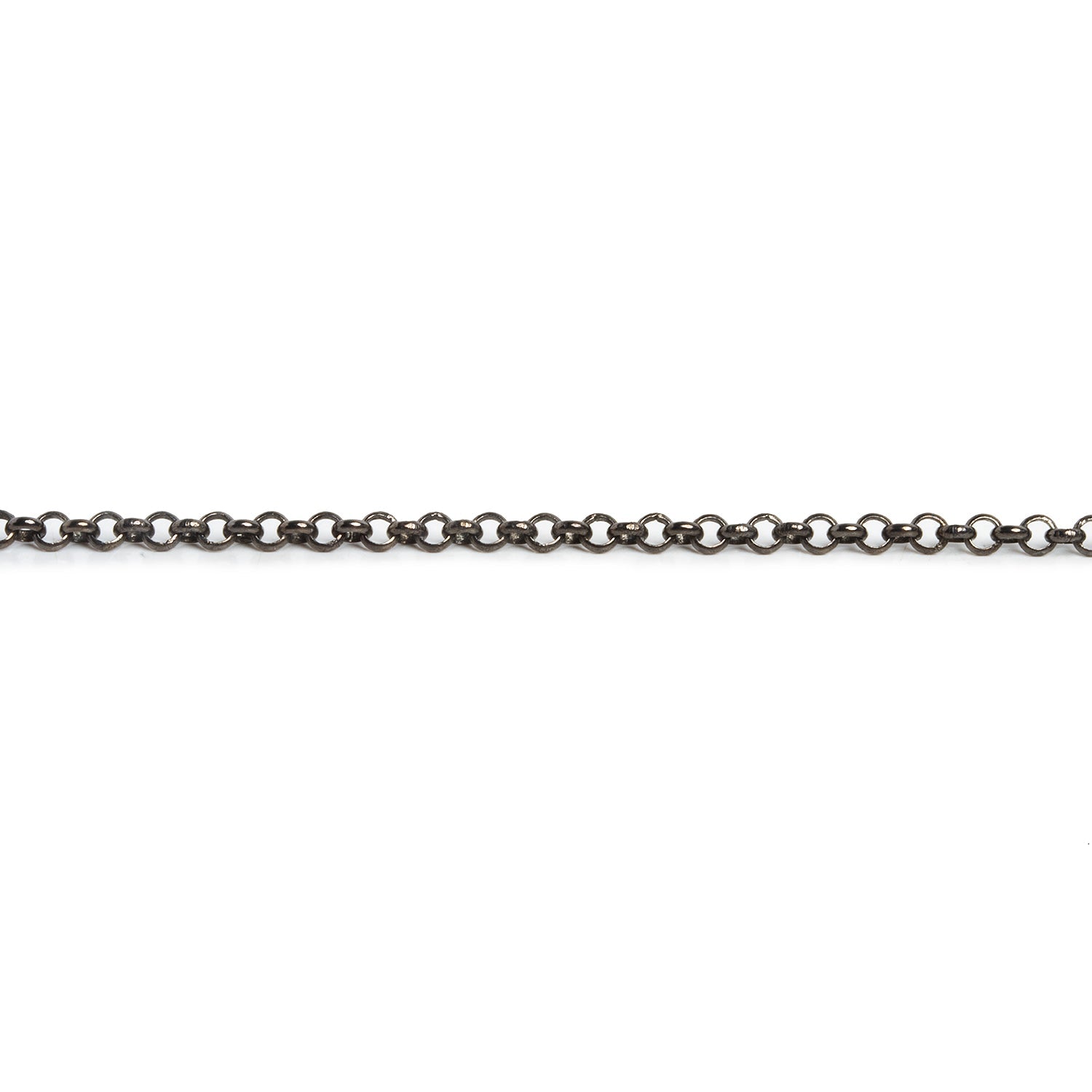 Chain links measure roughly 2.5mm. Our unique Black Gold Plated Link Chain is sold in 3 foot units as one continuous piece.