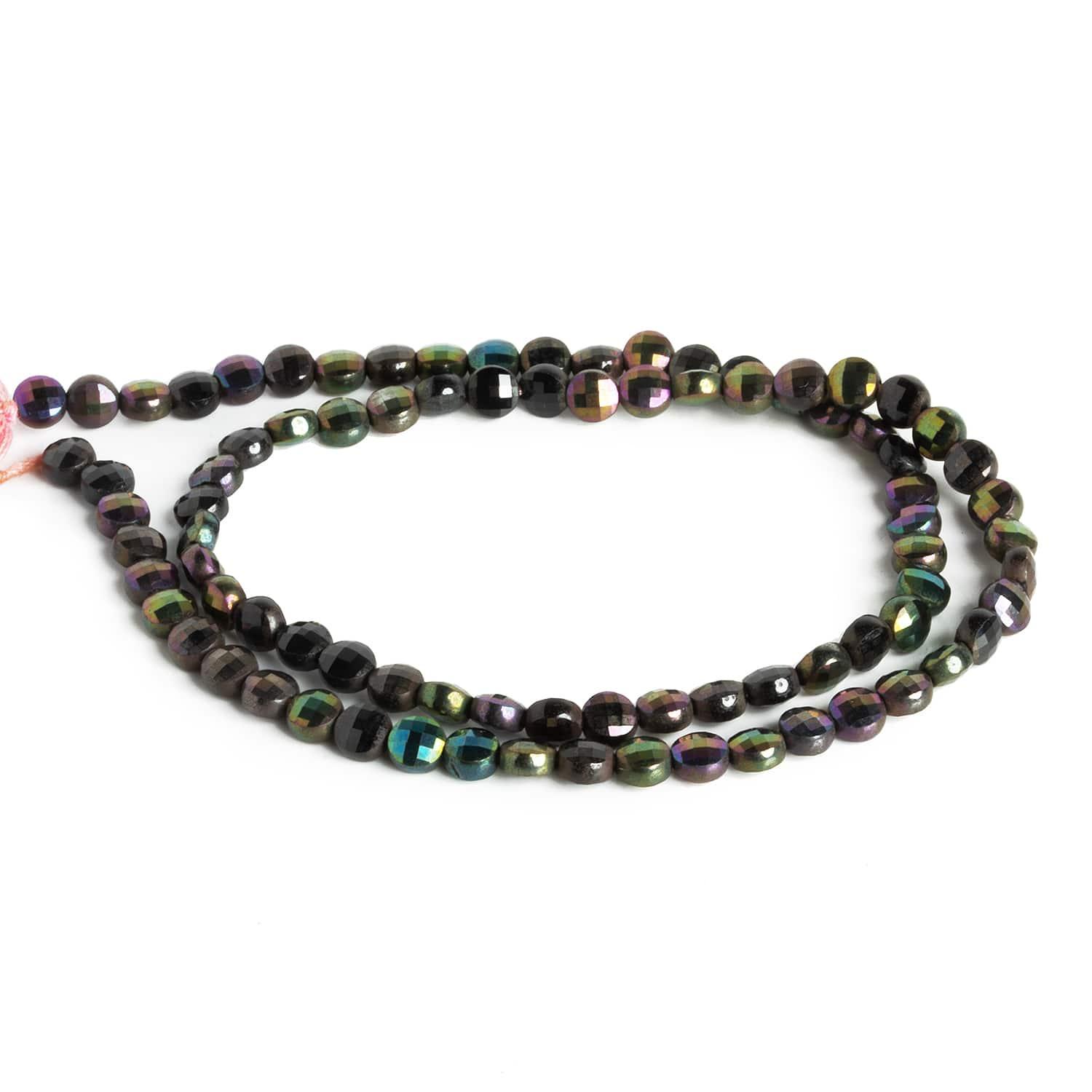 4mm Peacock Mystic Black Spinel Checkerboard Coins 12 inch 80 beads