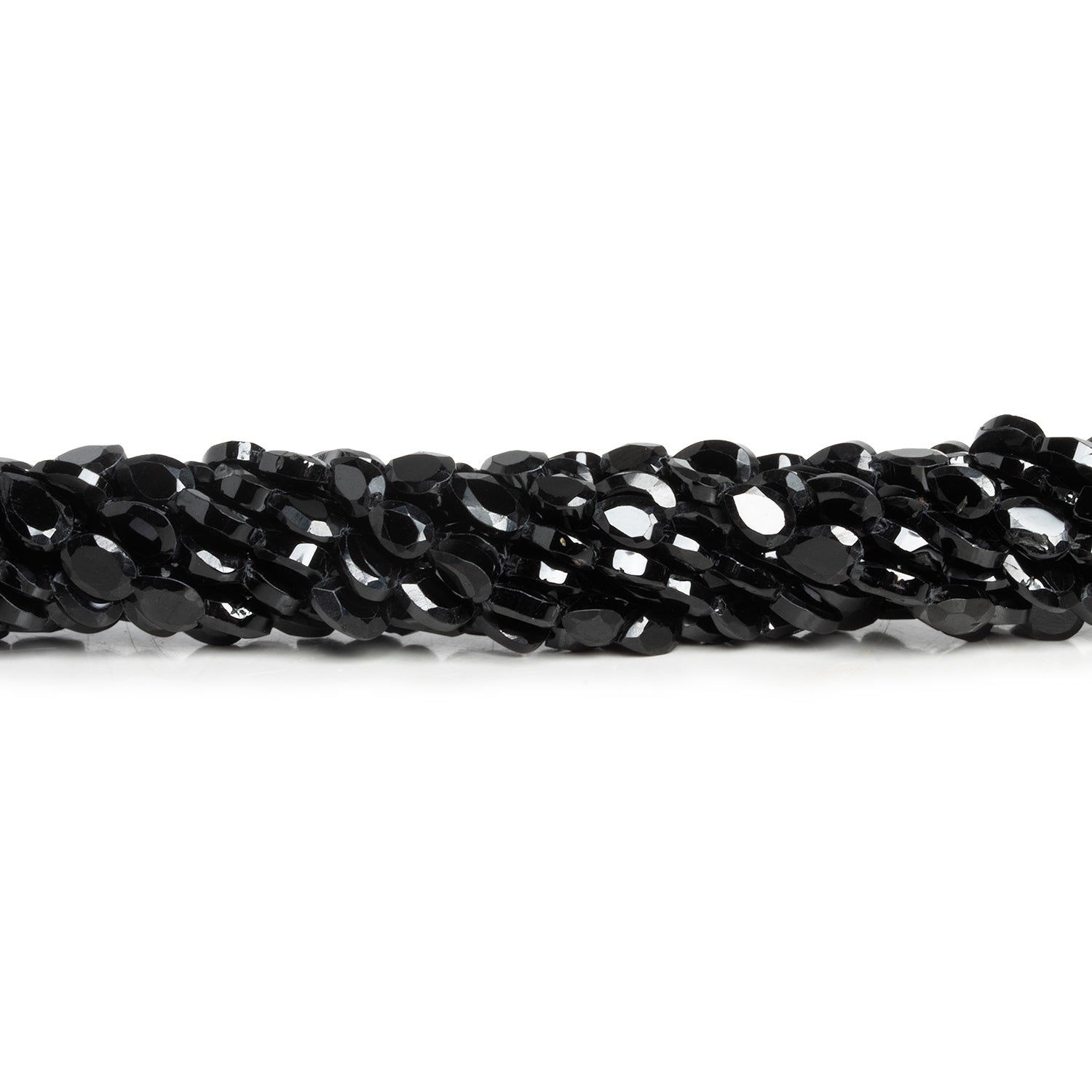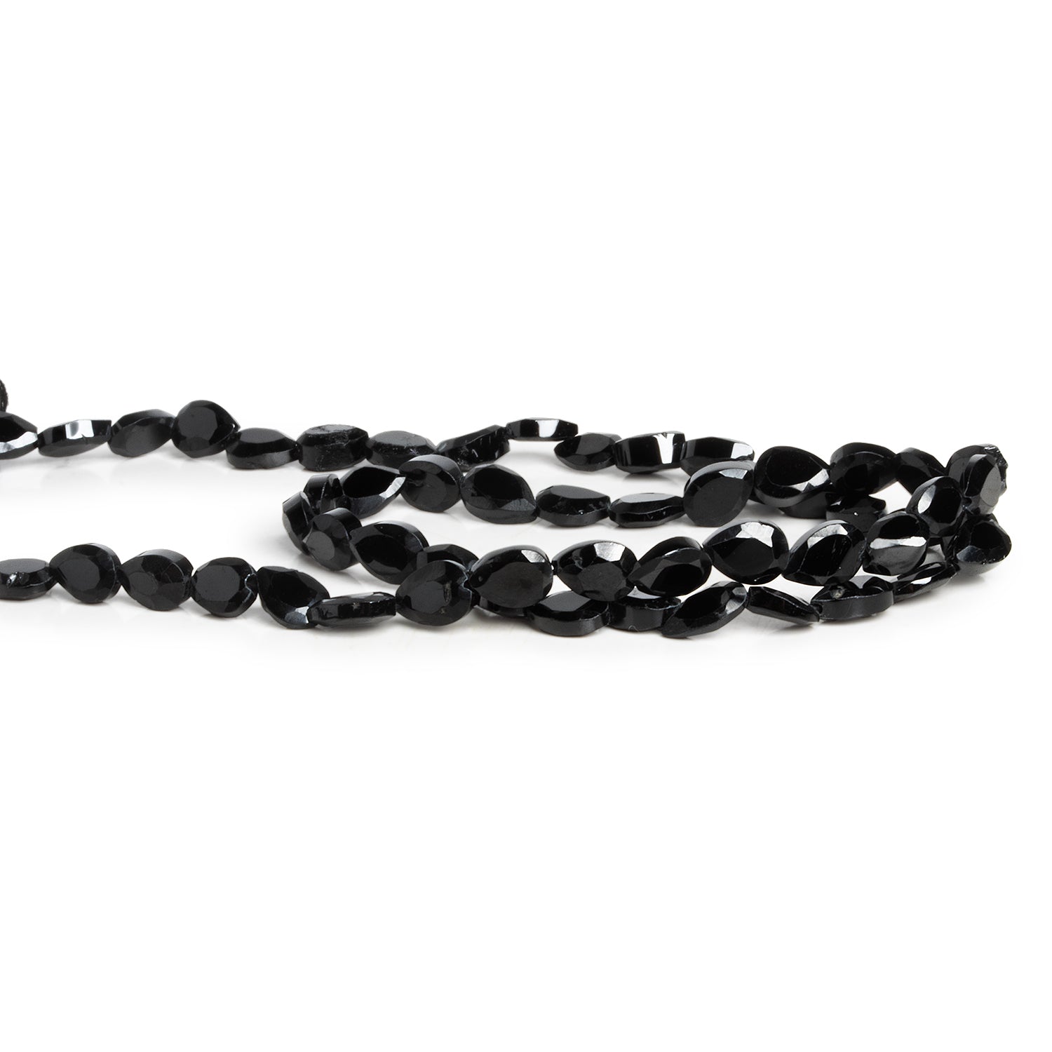 Beads range from about 5x4mm to 6.5x5mm. These jet black beads show off gleaming facets that create a highly contrastive tableau, alluring to Jewelry Designers seeking an elegant look with straight-drilled beads. These uniquely crafted offerings are ideal for use in necklaces, earrings and much more.