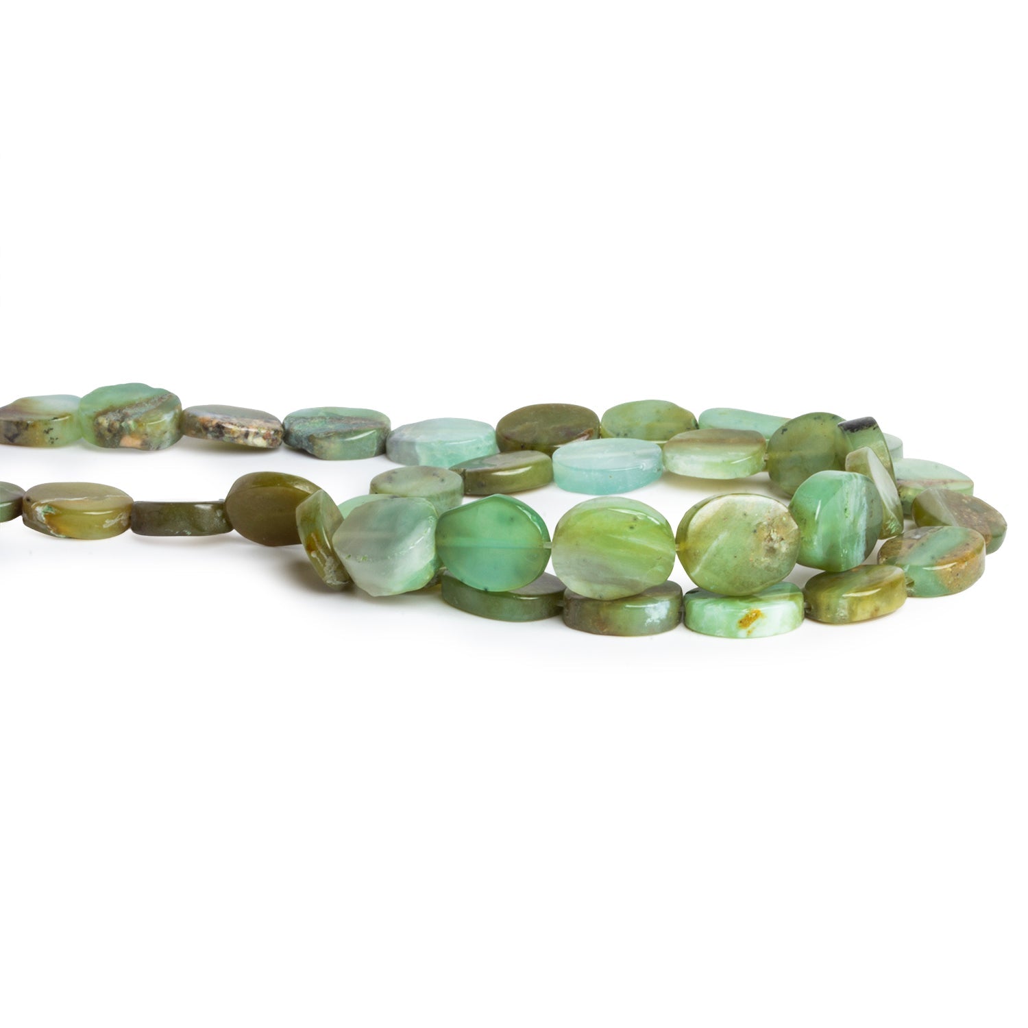 Our Blue Peruvian Opal Plain Oval Beads offer a soothing palette of oceanic greens, teals, and soft blues, interspersed with earthy inclusions and delicate translucence. Each bead is smoothly polished into a pleasing oval form, highlighting the stone’s natural color variations and gentle shifts from milky pastels to rich, mossy tones. Measuring between 9x7mm and 12x10mm, these versatile ovals are ideal for designs that embrace the tranquil, organic beauty of natural gemstones.