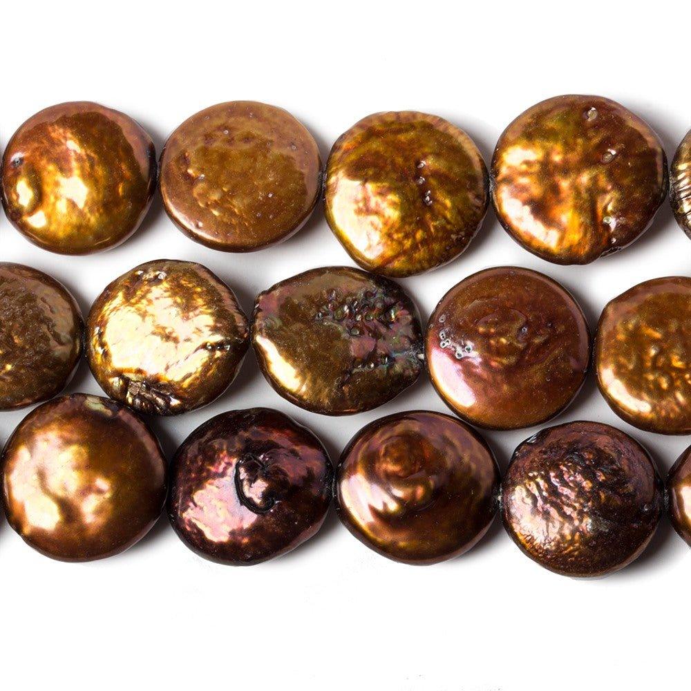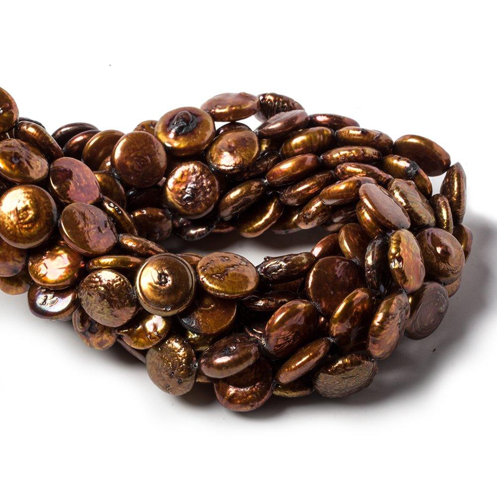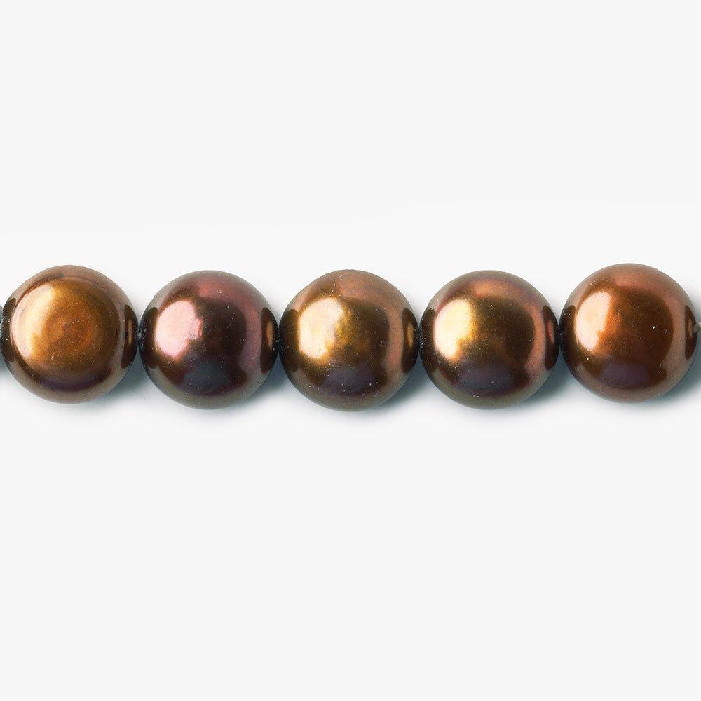 Bronze Brown Center Drilled Button Freshwater Pearl 16 inch 44 pieces 10mm