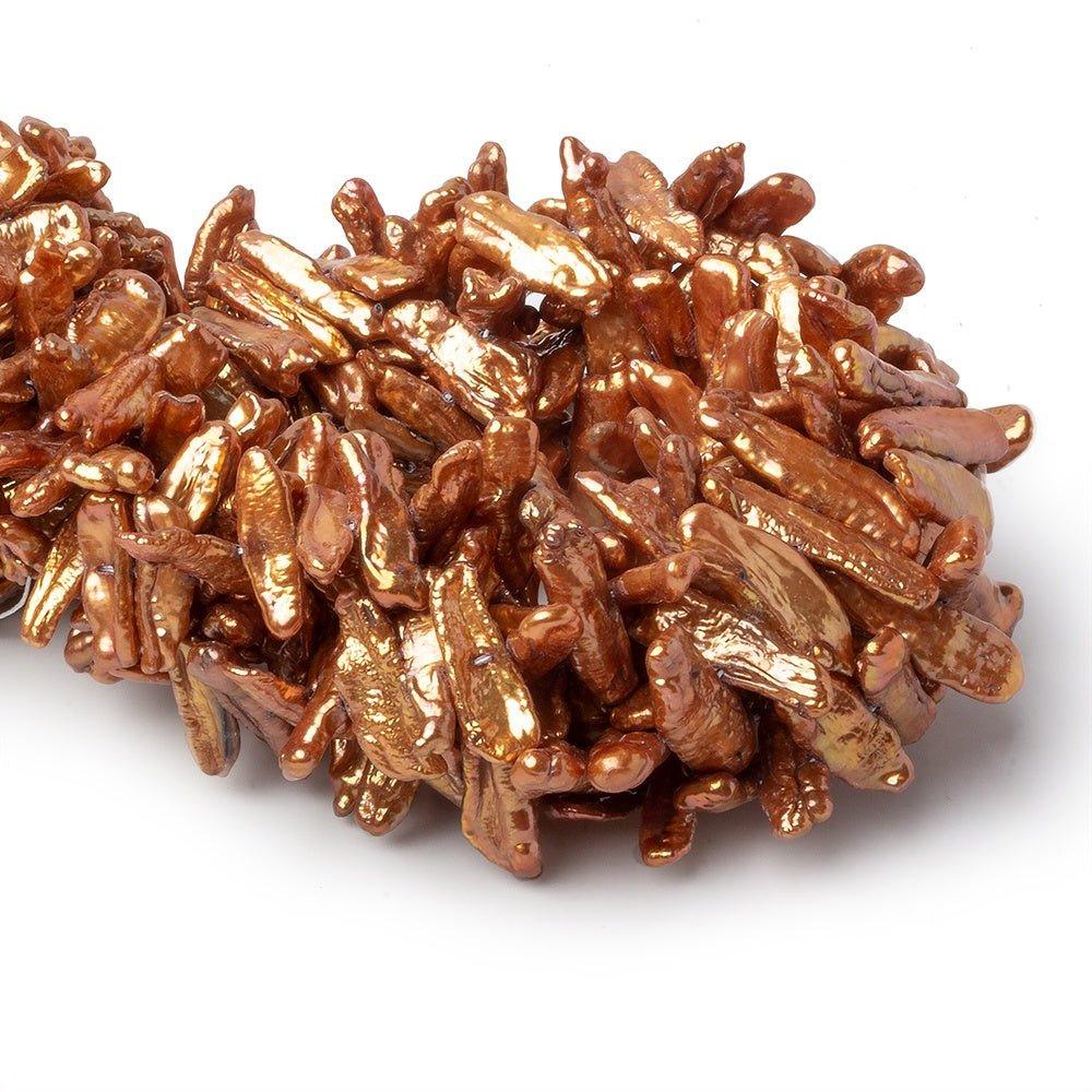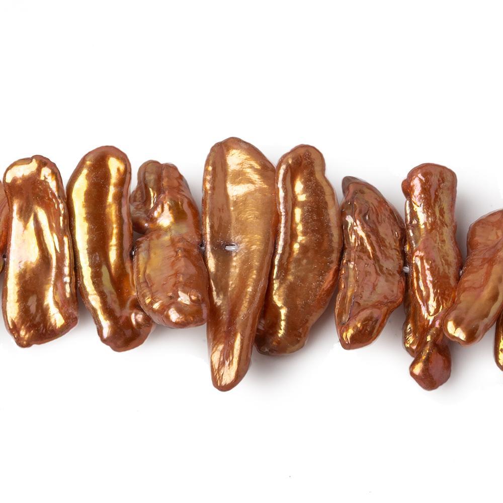 22mm Golden Copper Side Drilled Biwa Freshwater Pearl Strand 15 inch 75 pieces