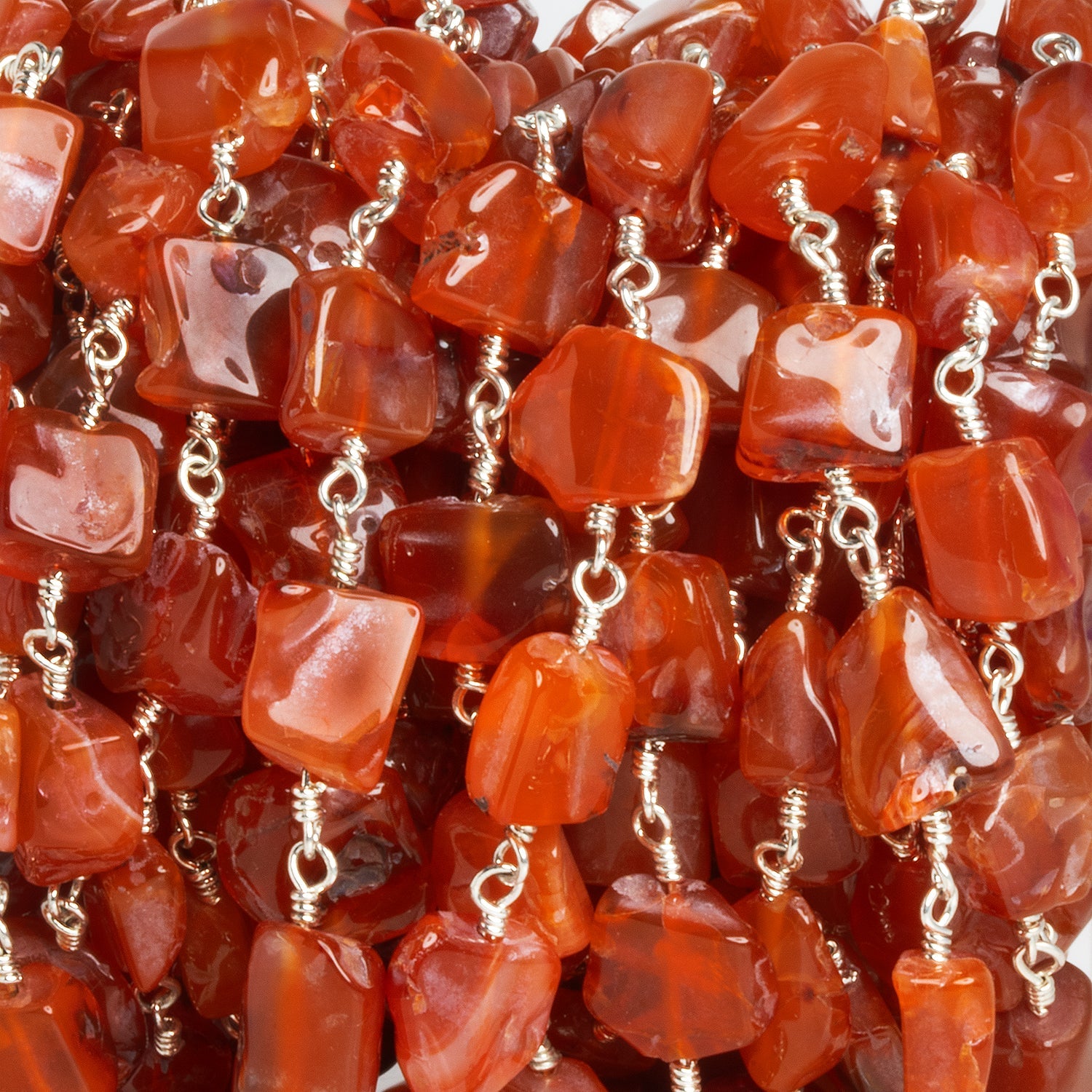 9x8mm Carnelian Hammer Faceted Nugget Silver Chain