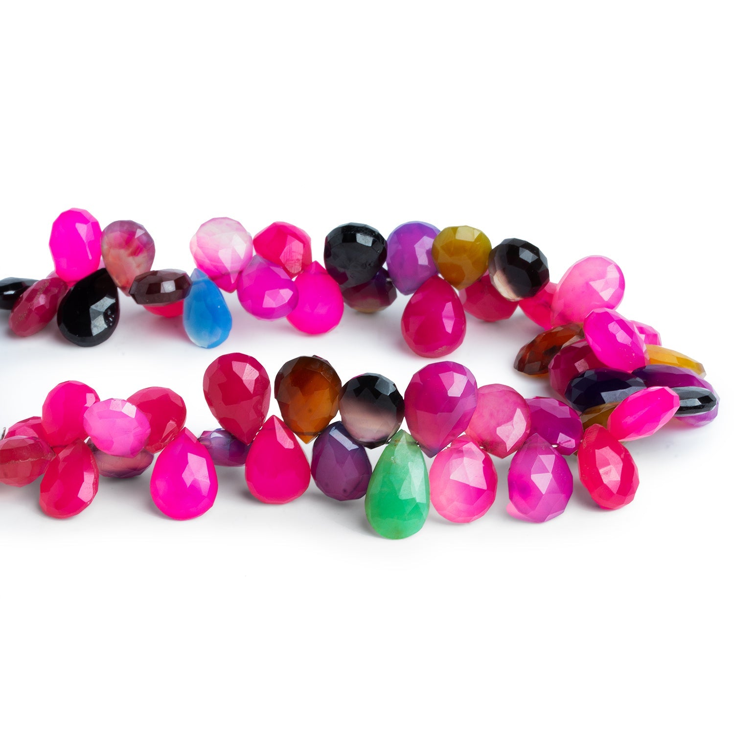 These Multi Chalcedony Faceted Pear Beads shimmer with vibrant brilliance, offering a striking mix of bold and playful colors. Each bead is precision-cut into a pear shape with multiple facets that enhance light reflection, giving these gemstones a sparkling finish. Their saturated palette includes vivid pinks, deep purples, rich greens, and warm earthy tones, making them a versatile choice for standout designs.
