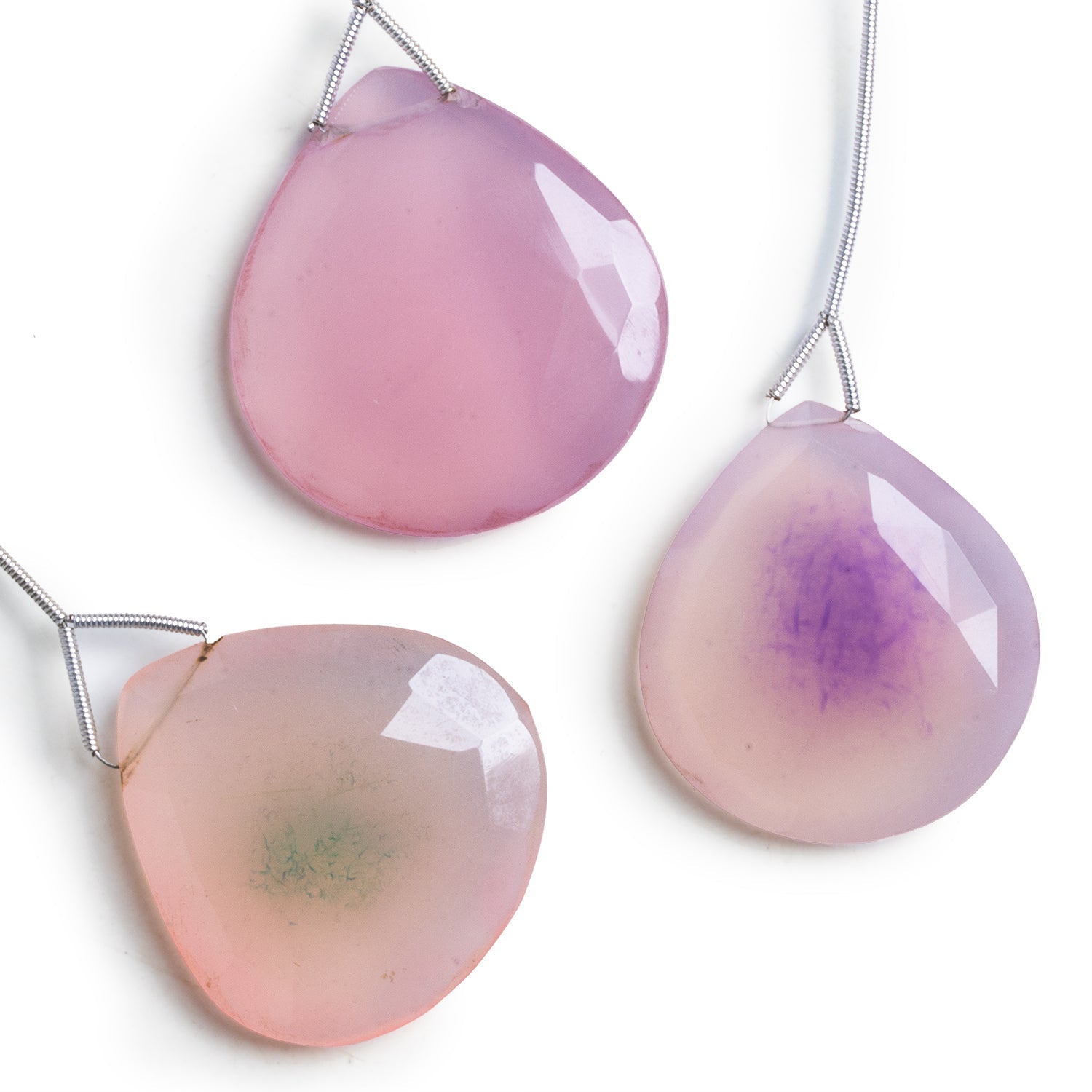 Beads average 34x30mm with a somewhat intermediate shape between heart and pear. Our eye-catching Chalcedony focal beads are brimming with pink tones on broad milky bodies. These sizable pieces are ideal for bringing a pop of color to a variety of Jewelry Designs from statement necklaces to earrings and much more. Beads are color enhanced.