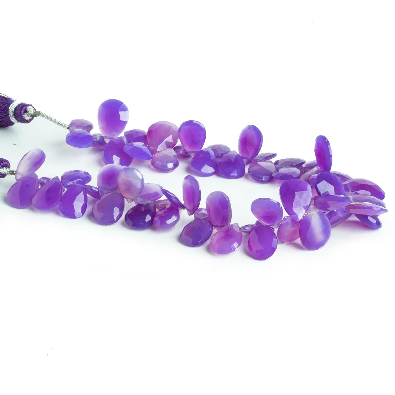 Purple Chalcedony Faceted Pears 8 inch 51 beads