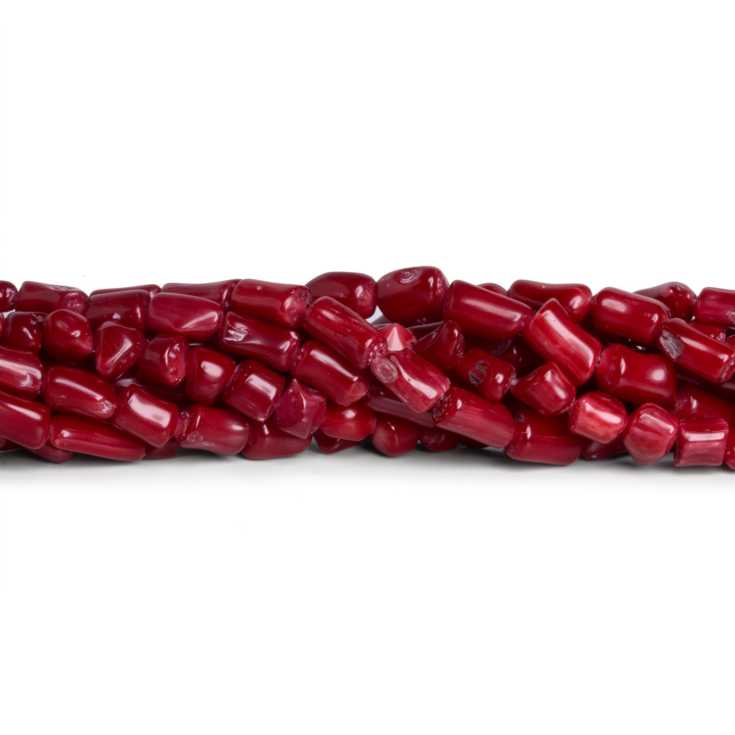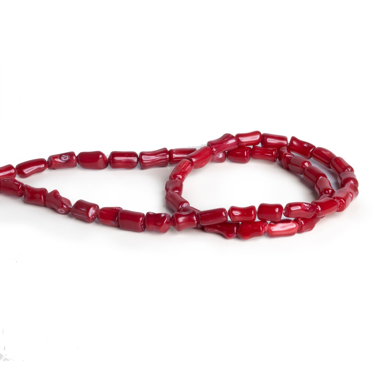 These Red Bamboo Coral Nugget Beads measure between 5x4mm to 10x6mm and are strung together to form a rich, vibrant strand. The beads are a glossy, deep red, offering a beautiful, organic texture that mimics the shape and feel of natural coral. The uneven, chunky nugget shape creates visual interest, making them ideal for creating bold, statement jewelry or adding a pop of color to any design. Perfect for boho, beach-inspired, or eclectic styles, these coral beads provide a striking contrast and a touch of nature’s beauty to your creations.