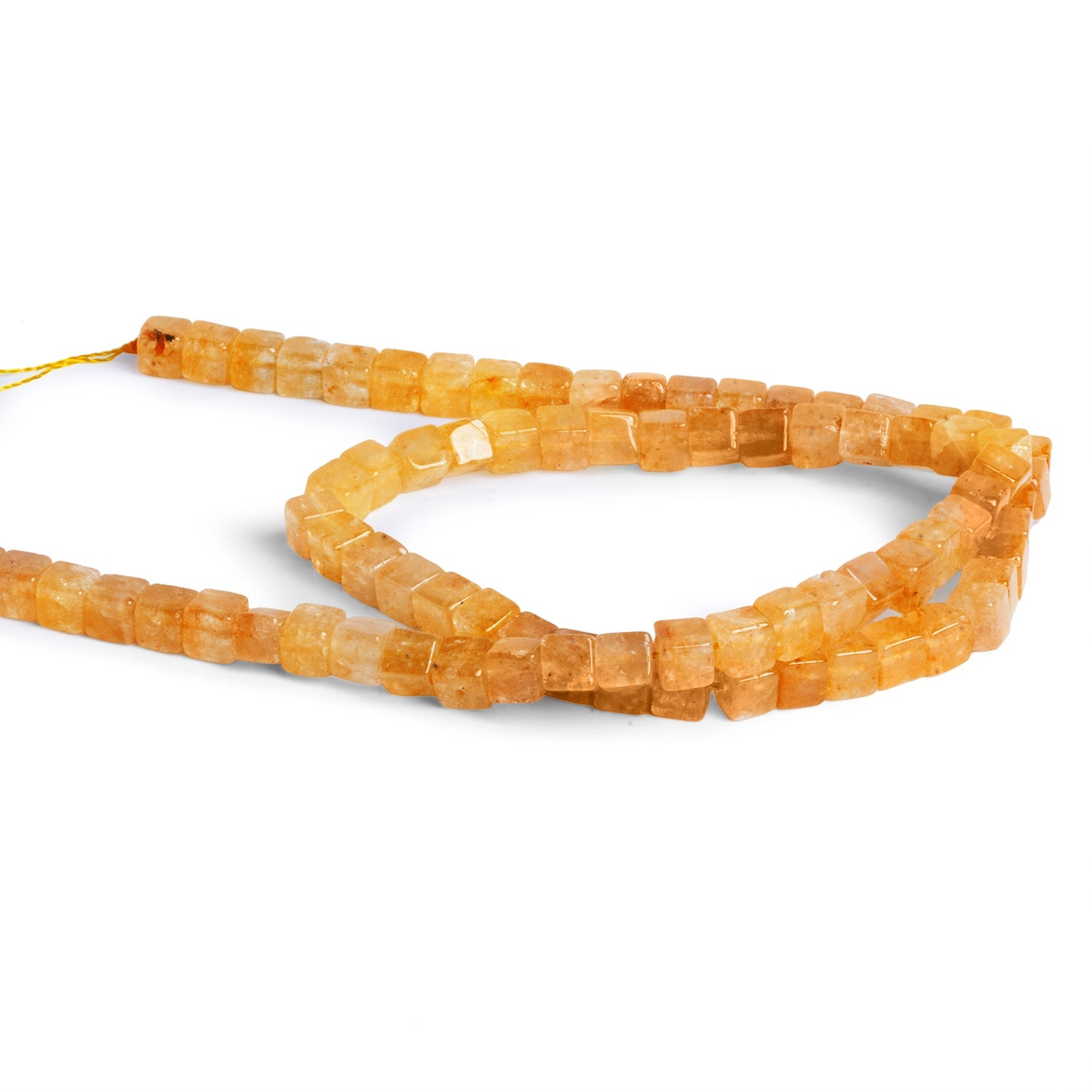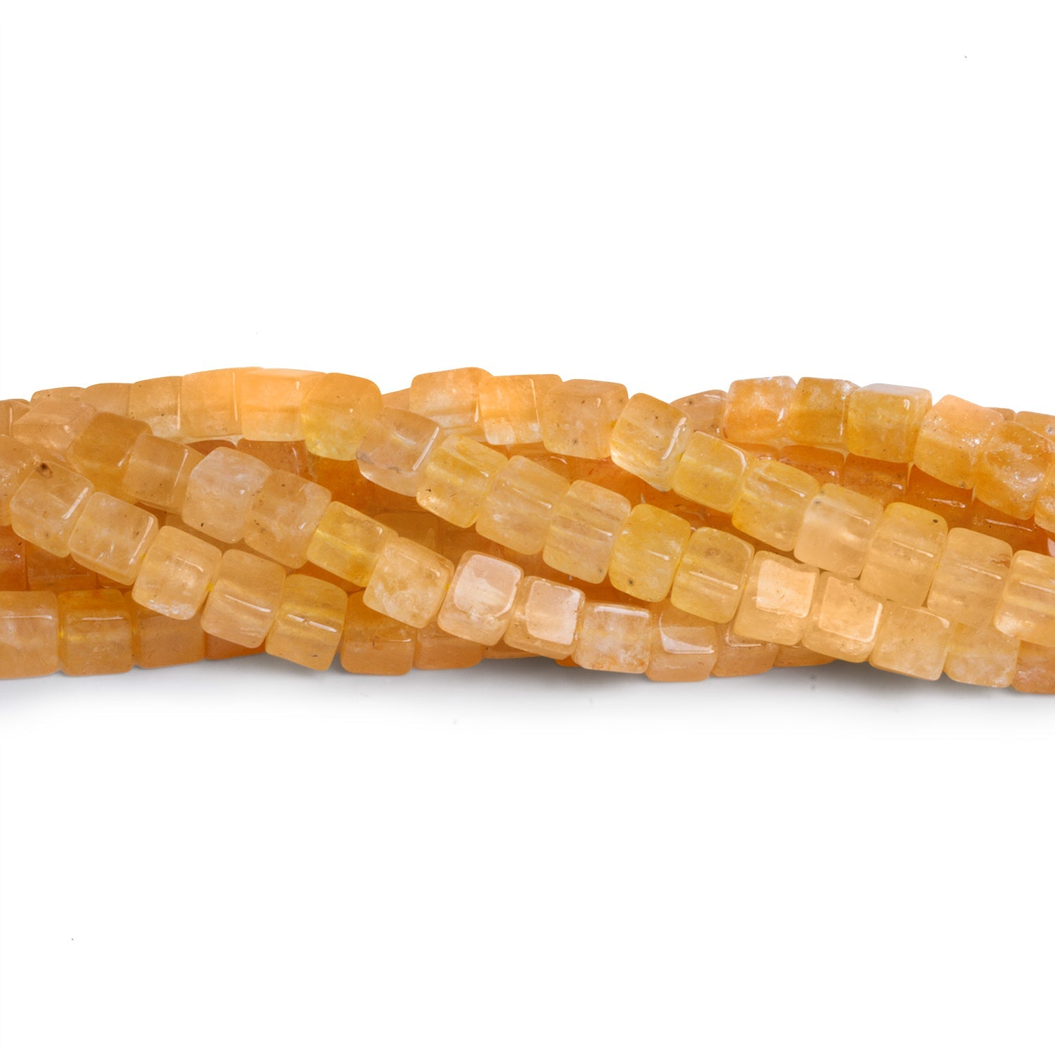 Warm and inviting, these Yellow Aventurine Plain Cube Beads feature a soft golden hue with natural translucence and subtle shimmer. Measuring approximately 4.5mm, each bead is precisely cut into a clean cube shape, offering a modern geometric form that pairs beautifully with the stone’s organic texture and sunny coloration. The even sizing and polished finish make these beads ideal for delicate, symmetrical designs with a cheerful, earthy vibe. Perfect for adding a pop of color to minimalist pieces or layering into mixed-stone designs, these yellow aventurine cubes bring balance, warmth, and versatility. Whether used in bracelets, earrings, or as spacers in larger creations, their natural glow and smooth polish make them an effortless choice for designers seeking soft tones and structured elegance. Let these gentle golden cubes brighten your collection with their understated charm.