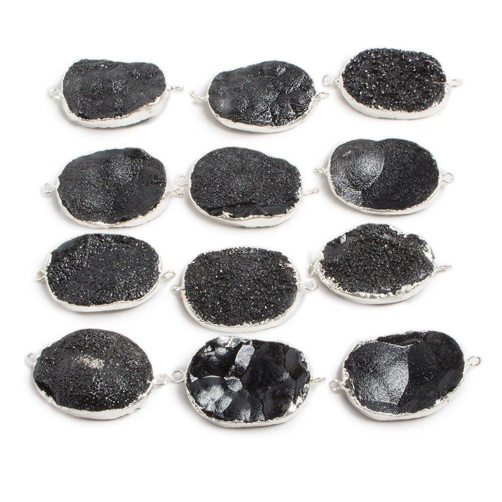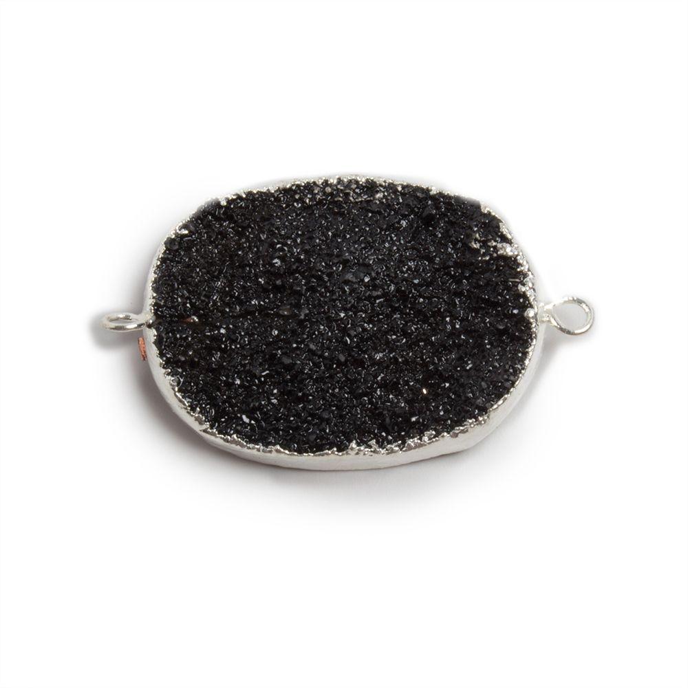 30x22mm Silver edged Black plated Oval Drusy Connector 1 focal bead