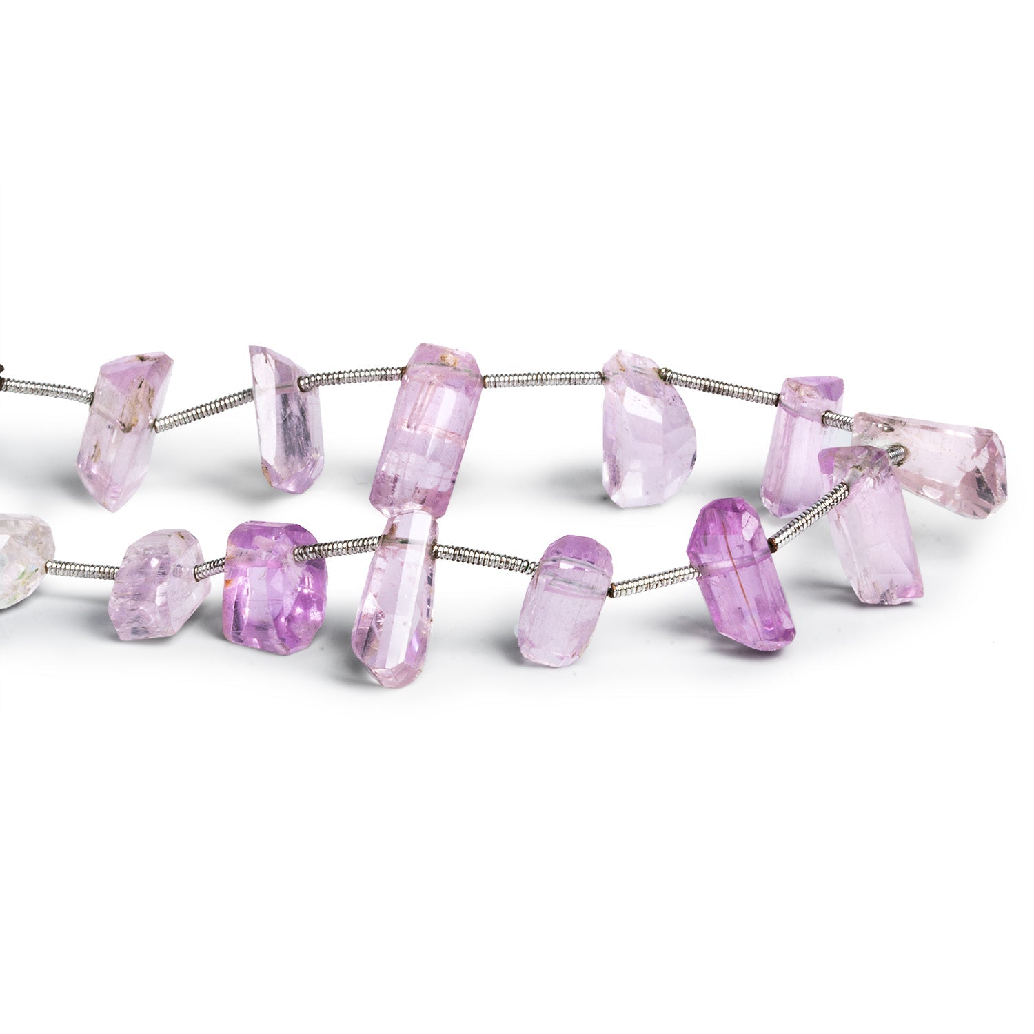 These Kunzite Faceted Nugget Beads dazzle with their soft, romantic hues of lilac and pale pink, enhanced by crisp, angular facets that shimmer with movement. Measuring between 10x7mm and 15x13mm, each bead is uniquely shaped with raw elegance, blending organic appeal with a touch of refinement.