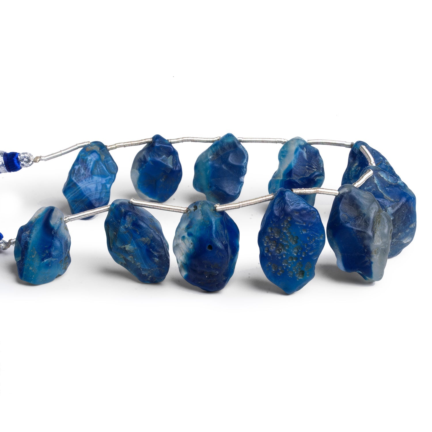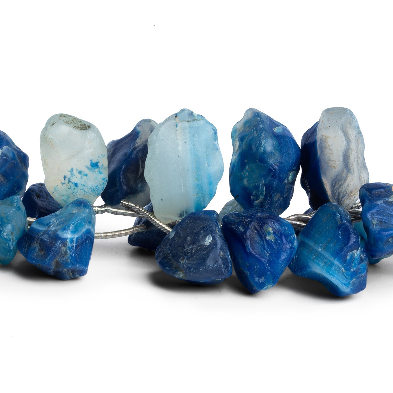 Discover the striking depth of these Blue Agate Hammer Faceted Nugget Beads, where bold color meets natural artistry. Each bead displays a vibrant range of deep navy, sapphire, and lighter sky-blue tones, layered with subtle white banding and earthy inclusions. The irregular hammered faceting adds raw texture, enhancing the organic charm of these nuggets while catching light in unique, eye-pleasing ways. Their bold hues and rugged structure make them ideal for designs that call for both strength and sophistication.