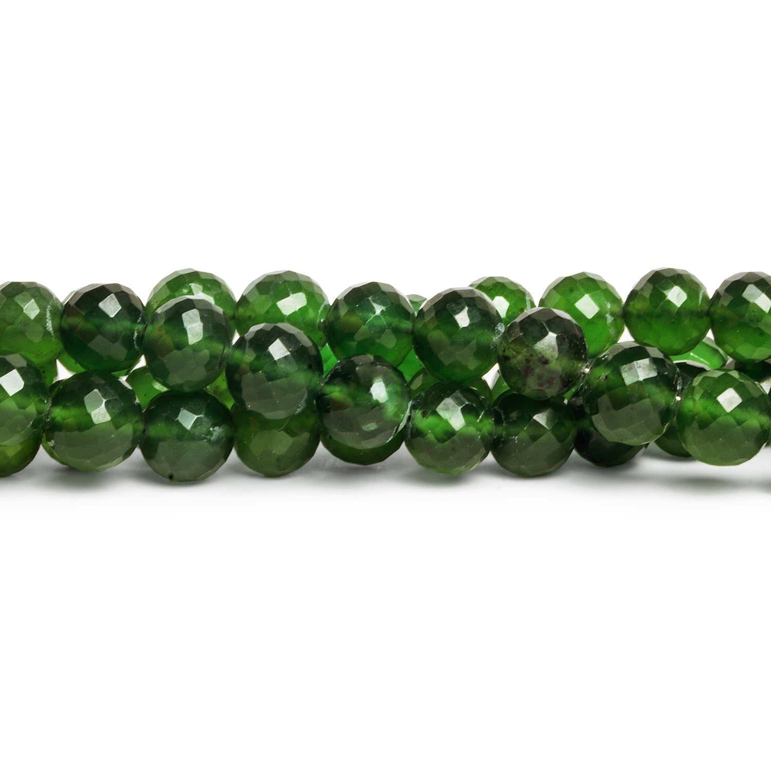 These Serpentine Faceted Round Beads captivate with a vivid, glossy green that evokes the richness of deep forest foliage. Measuring between 6mm and 7mm, each bead is precisely faceted to create a brilliant, light-catching surface that adds dimension and energy to your designs. The uniform round shape and polished finish highlight the stone’s natural translucence and subtle variations in tone, from fresh spring green to intense jade-like depths.