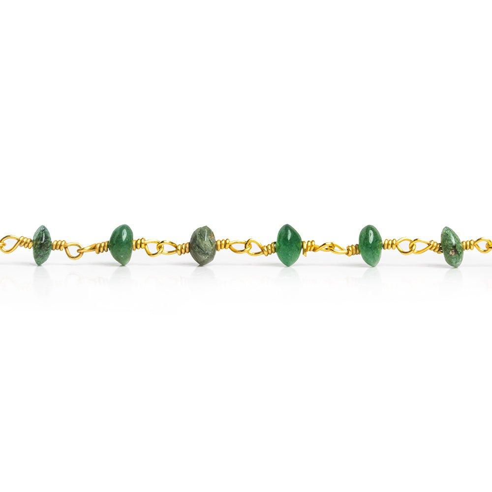Expertly hand wrapped, our Green Aventurine Rondelle Gold Plated Chain features 33 stunning beads per foot. Add a touch of elegance to your jewelry designs with this rich gold chain, available in convenient 3 foot increments. Elevate your creations with this high-quality, versatile chain.