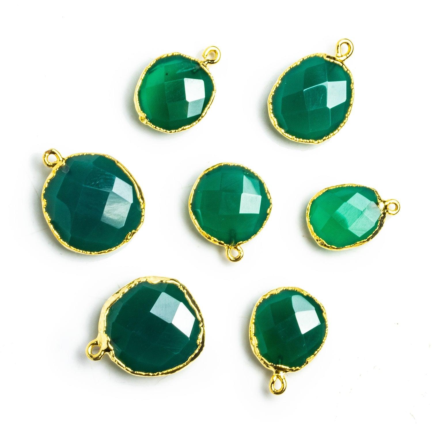 Pendants average about 16x11mm. These pieces feature milky translucent bodies with irregular oval and rounded shapes enveloped in our gorgeous gold leafing. Expect variation in size & shape with the deep green color familiar to fans of Green Onyx.