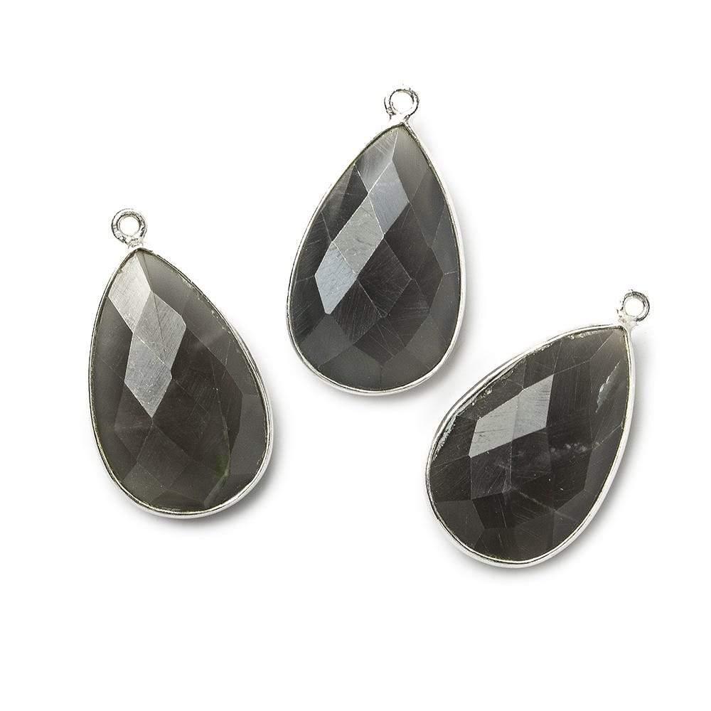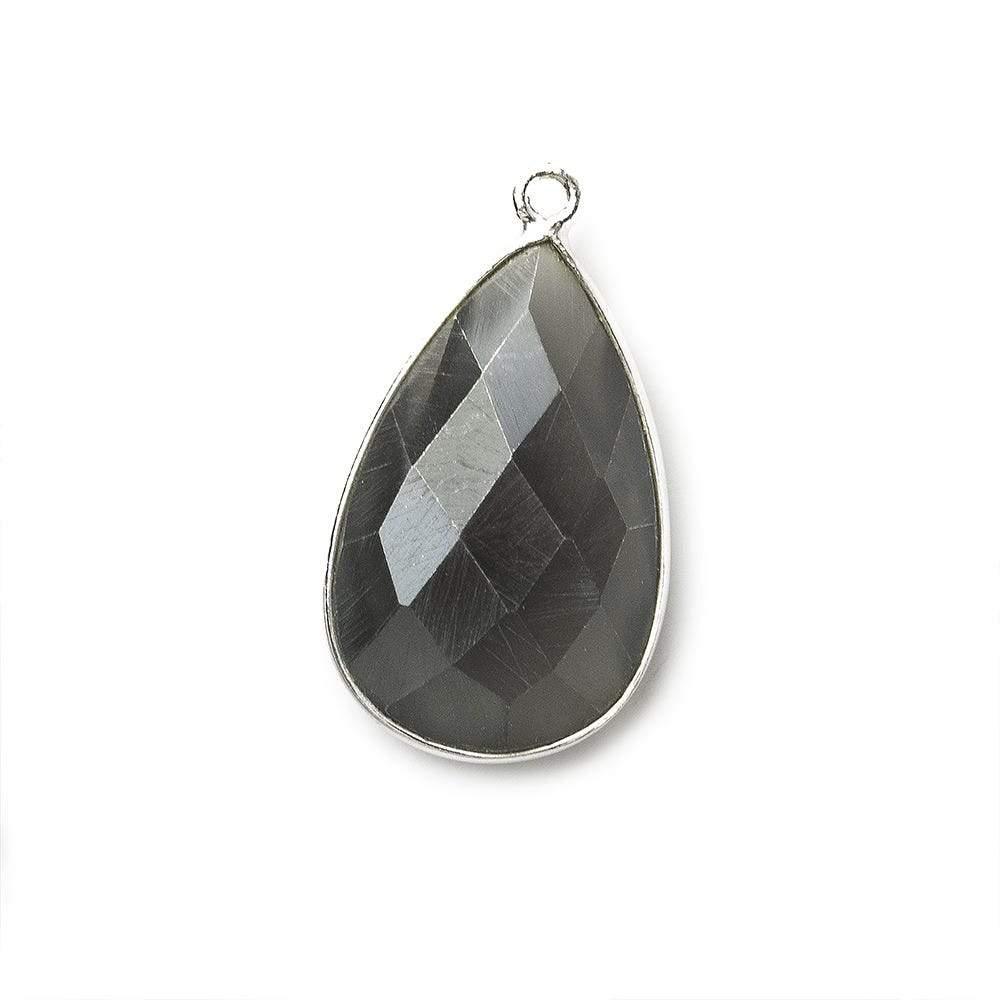 26x17mm Silver .925 Bezel Platinum Grey Moonstone faceted pear Pendant 1 piece