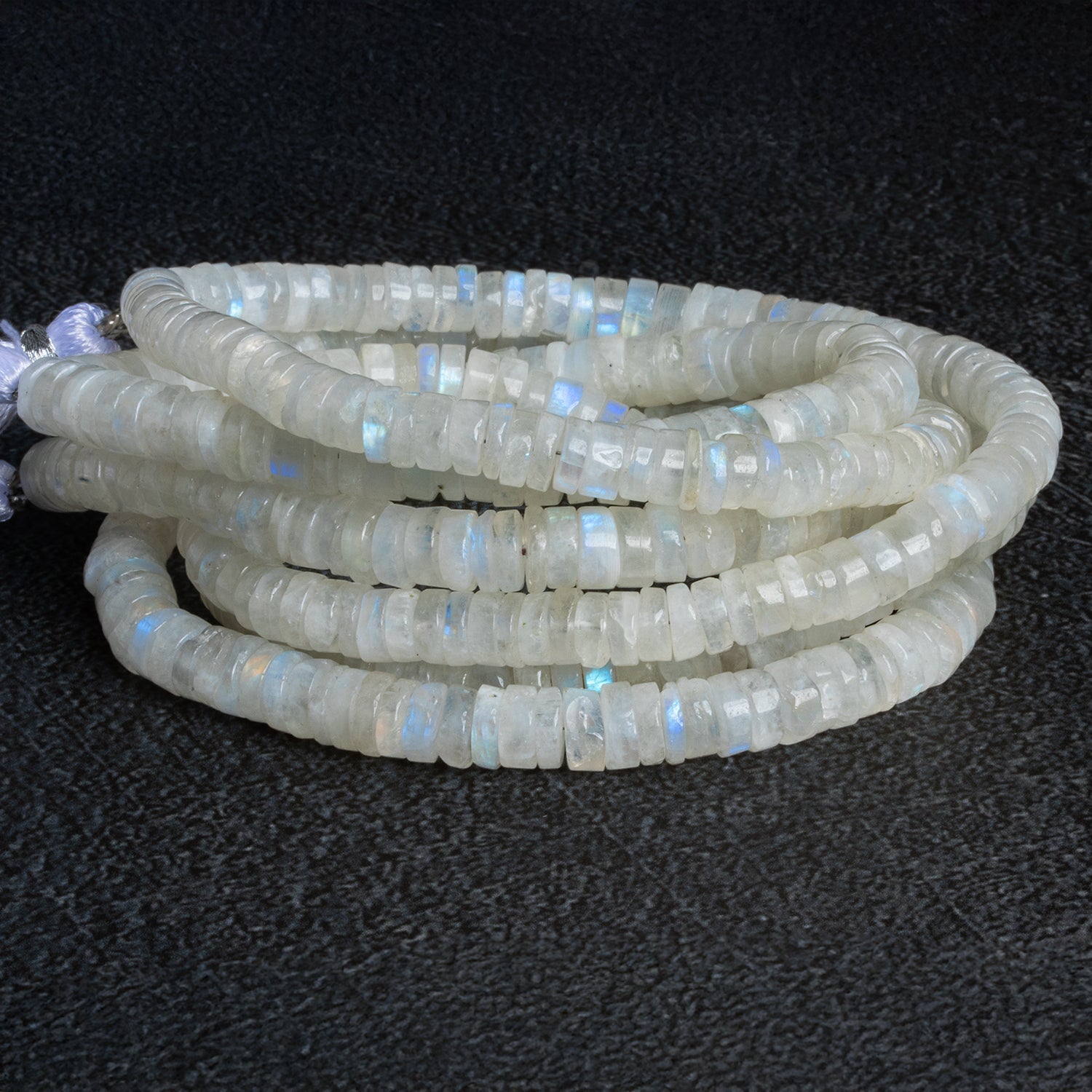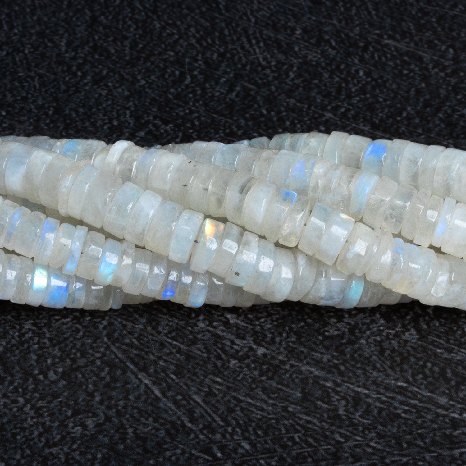 Explore the wonders of Rainbow Moonstone, whose gorgeous allure is epitomizes by these exquisitely crafted heishis. Light blue flash emanates from smooth polished beauties, accented by other Rainbow tones to astonishing effect. These relatively sizable offerings are perfect for making an impression in virtually any design calling for this natural marvel. Whether in bracelets, necklaces or earrings, our Rainbow Moonstone beads are destined to dazzle!