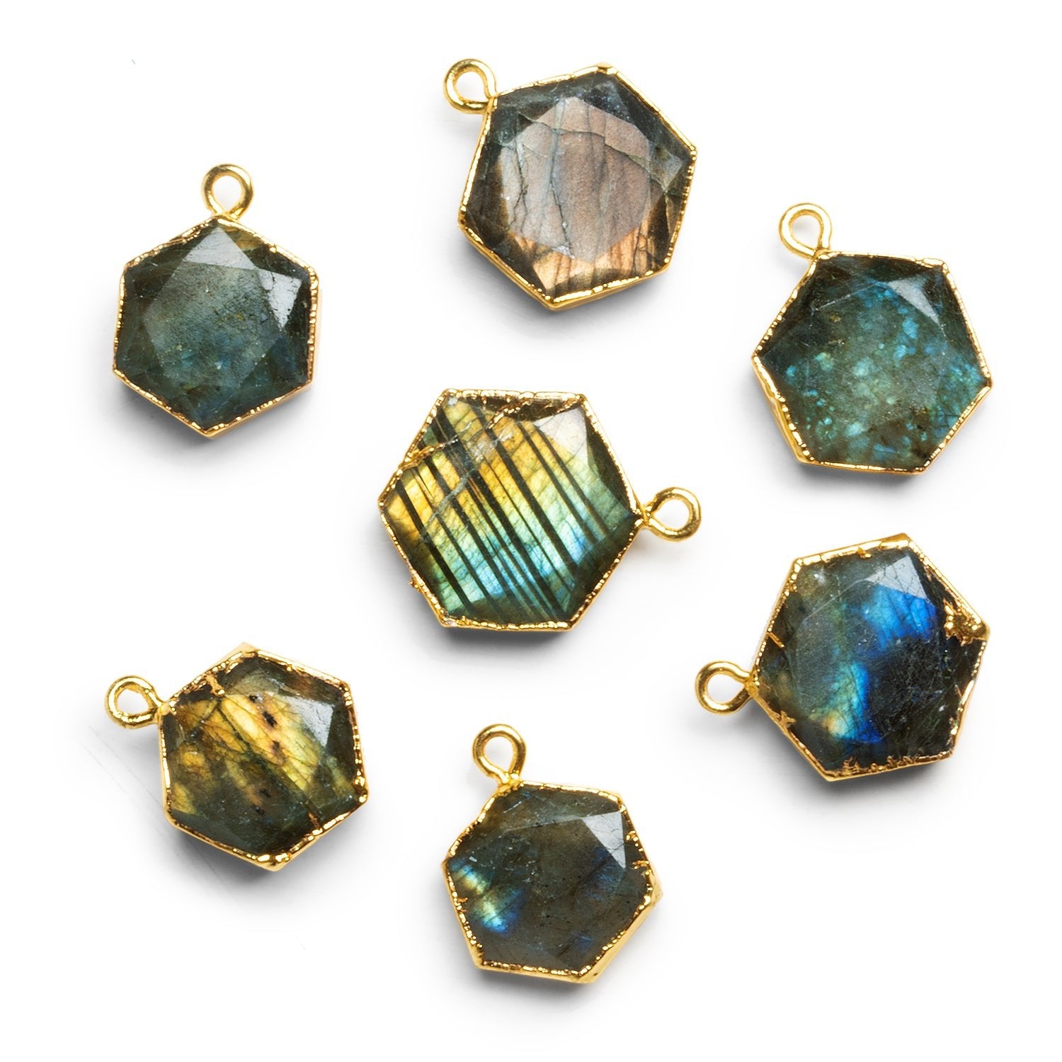 Beads measure 15mm in diameter. These beautiful pieces show off a colorful range of flash whose dazzling optical effects are enhanced paired here with our signature gold leaf. Bring a pop of vibrant color and mystique to your designs with this pendants, perfect as focal beads in necklaces, earrings and more.