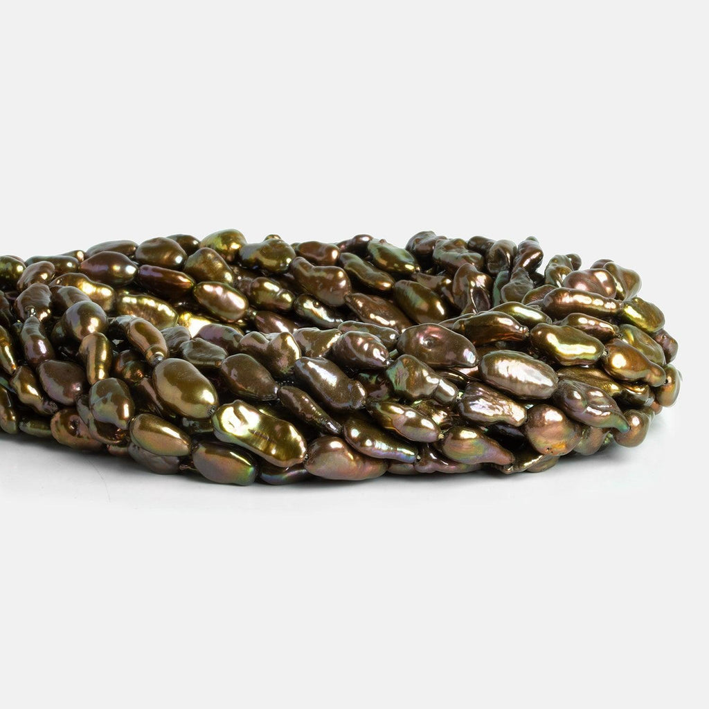Brassy Pistachio Peacock Keshi Straight-Drilled Pearls 15 inch 35 pieces - The Bead Traders