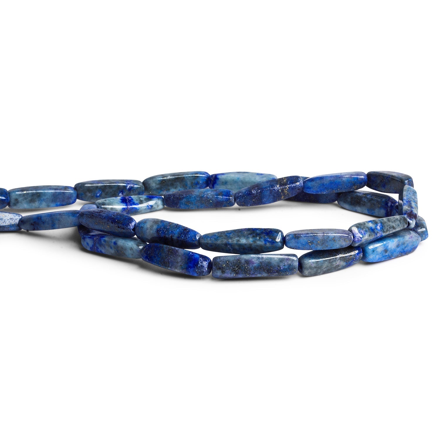 These Lapis Lazuli Twist Beads display a deep celestial blue enhanced by natural variations of lighter denim tones and golden pyrite flecks, creating a dynamic and richly textured surface. Each bead is cut in a graceful twisted shape, giving it added dimension and movement, allowing light to catch across the polished surfaces in striking highlights. The elongated 12x4mm profile makes these beads especially versatile for sophisticated stringing projects where subtle variation and elegance are key.