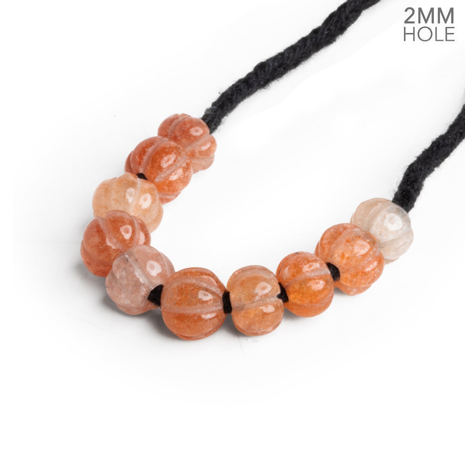 Beads measure about 7mm to 8mm with a 2mm large drill hole. These beautiful offerings show off hand carved craftsmanship on orange Aventurine designed to fit with the widest array of cording medium possible. Our versatile Melons are destined to dazzle in jewelry designs from necklaces to earrings and bracelets. Consider these unique pieces when sitting down to your next slate of creations, perfect for stringing on thick leather, showing off a handmade aesthetic and much more.