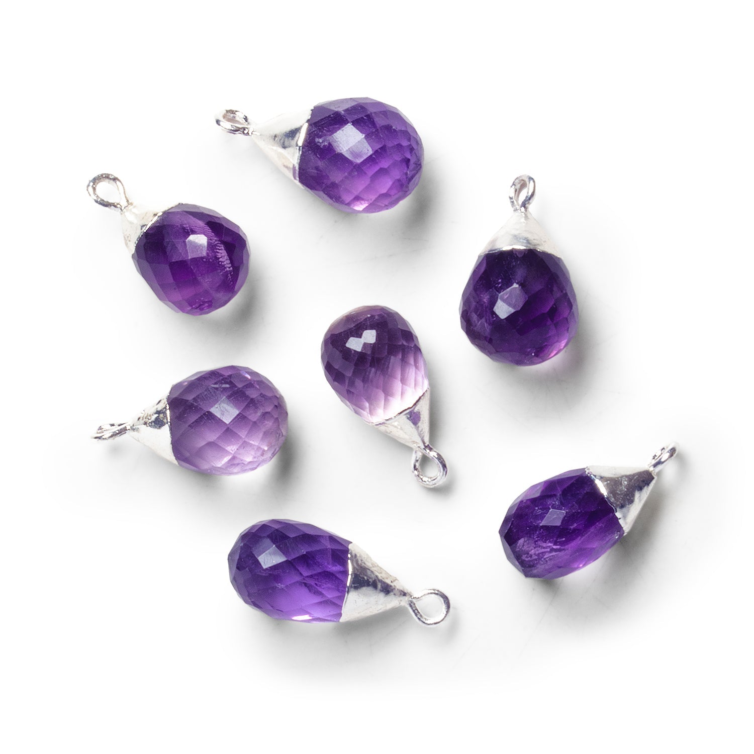 Beads average 20x9mm with a few mm of variation possible. These gorgeous pendant pieces exhibit an alluring, vibrant dark purple color palette, pairing exquisite, high-quality Amethyst with our signature silver leaf. These dainty pieces boast an exquisite faceting that highlights their remarkable clarity. Imbue your jewelry designs with the elegance and sophistication of Amethyst Teardrops, perfect for earrings, necklaces and much more.