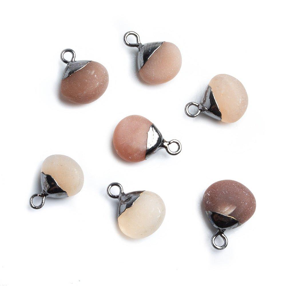 Black Gold Leafed Matte Peach Moonstone Heart Pendant 1 Piece