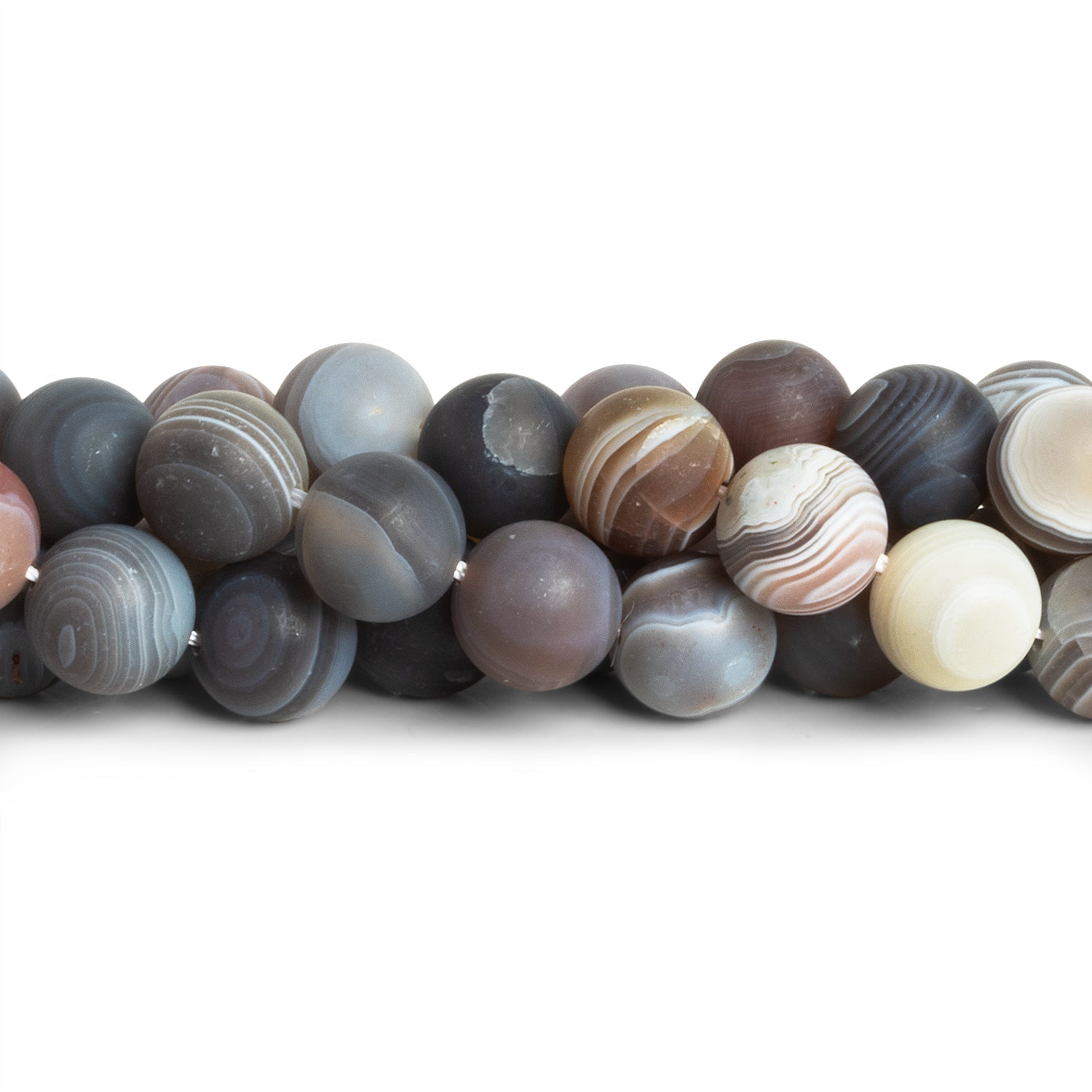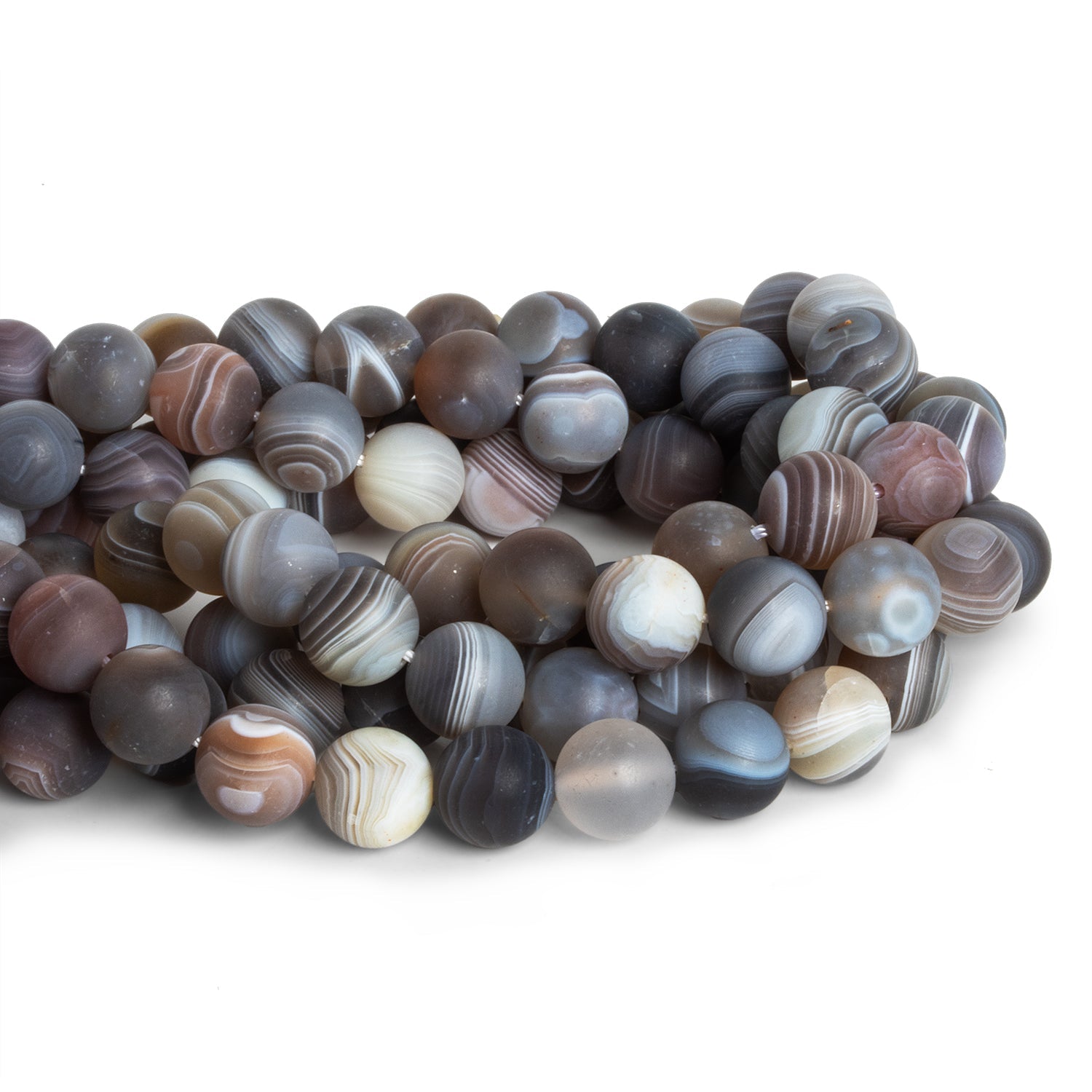 Beads measure about 10mm in diameter. These alluring, lightly colored beauties show off the signature color palette and banded texture of Botswana Agate, smoothed and softened by a delightful matte finish. Experience warm tones and exquisitely fine bands on beads specially curated on the strand. These Botswana Agate plain rounds are the perfect Jewelry Design mainstay for necklaces, bracelets, earrings and more.