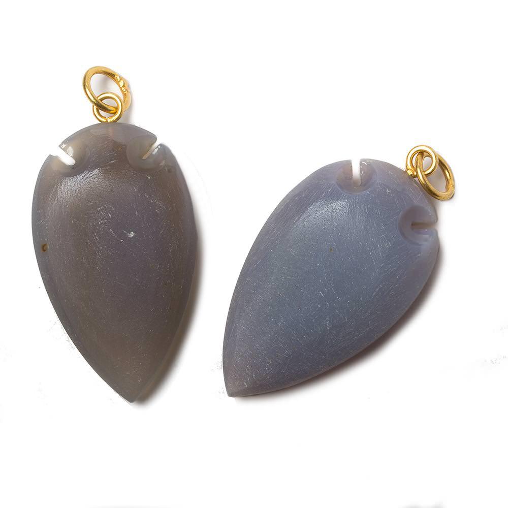 36x20mm Violet Grey Chalcedony Matte Arrowhead Focal Pendant 1 piece