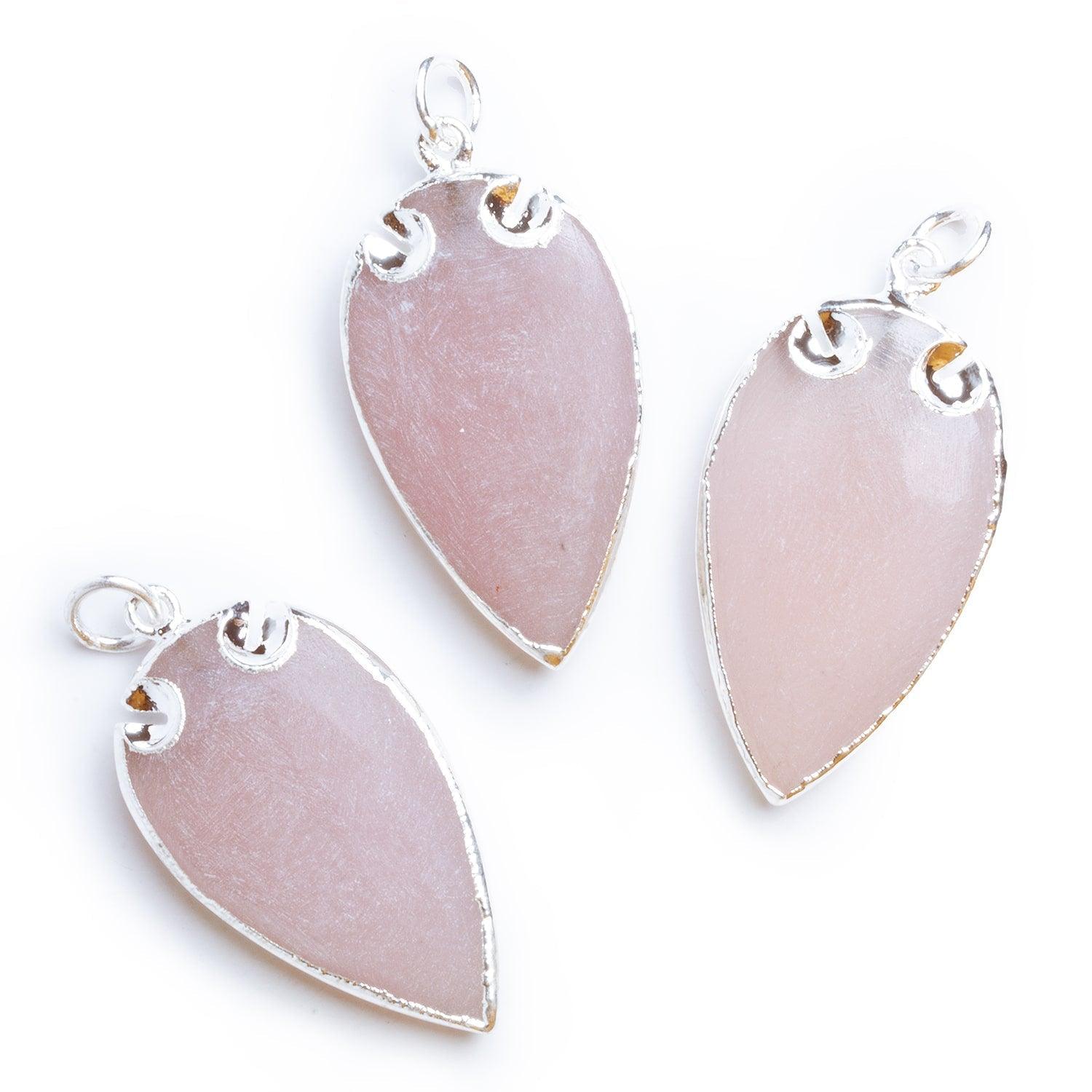 39x20mm Silver Leafed Matte Pink Chalcedony Arrowhead Pendant 1 Bead