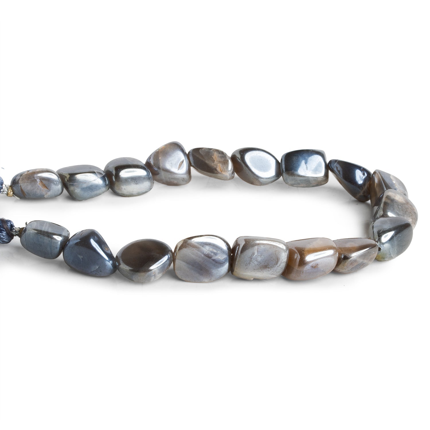 Beads range from about 9x7mm to 16x10mm. These curated strands feature sizable grey moonstone nuggets whose stunning flash is further enhanced by the addition of our signature mystic coating. Expect an angular nugget shape with an irresistibly smooth polish capable of starring in your most ambitious Jewelry Designs. Imbue your designs with the mystique of Grey Moonstone, perfect for statement necklaces, matching earrings and much, much more.