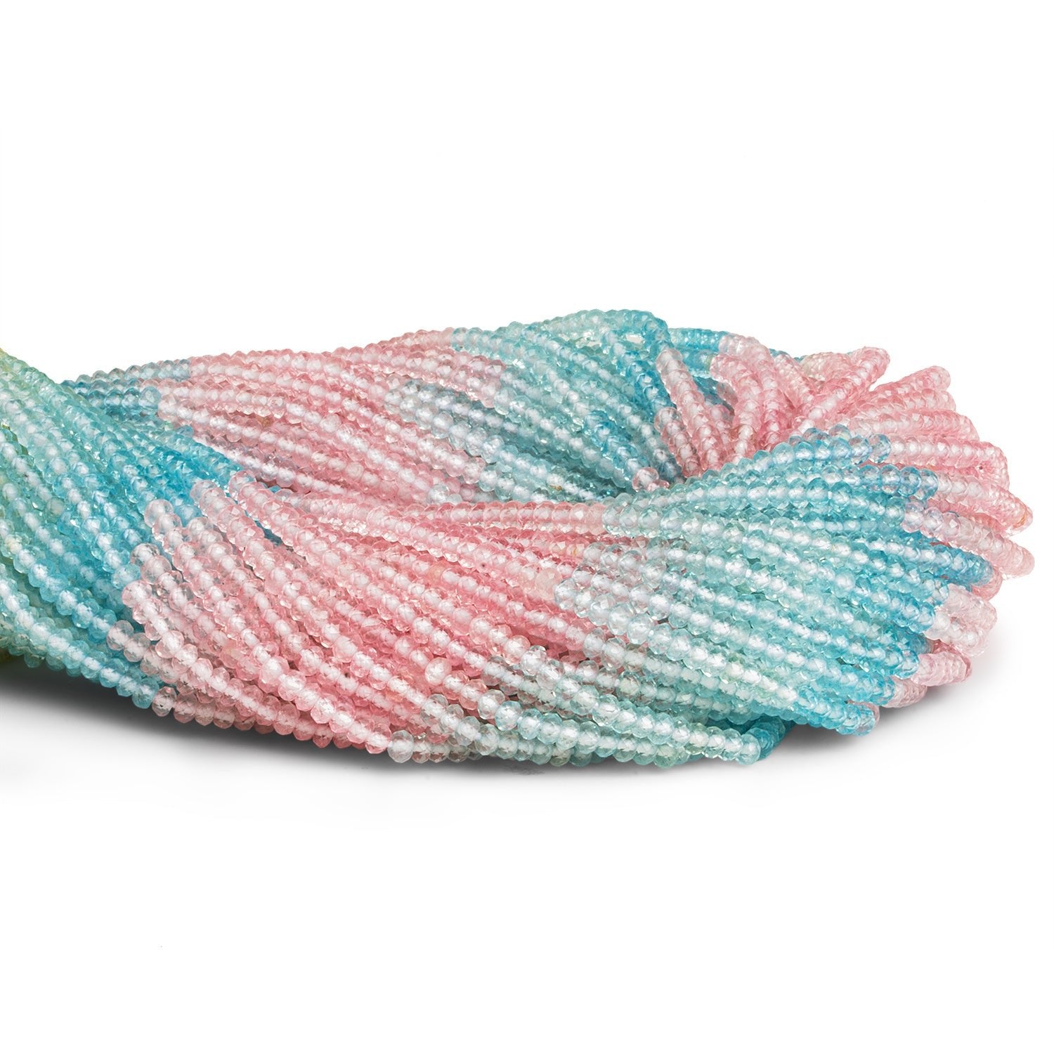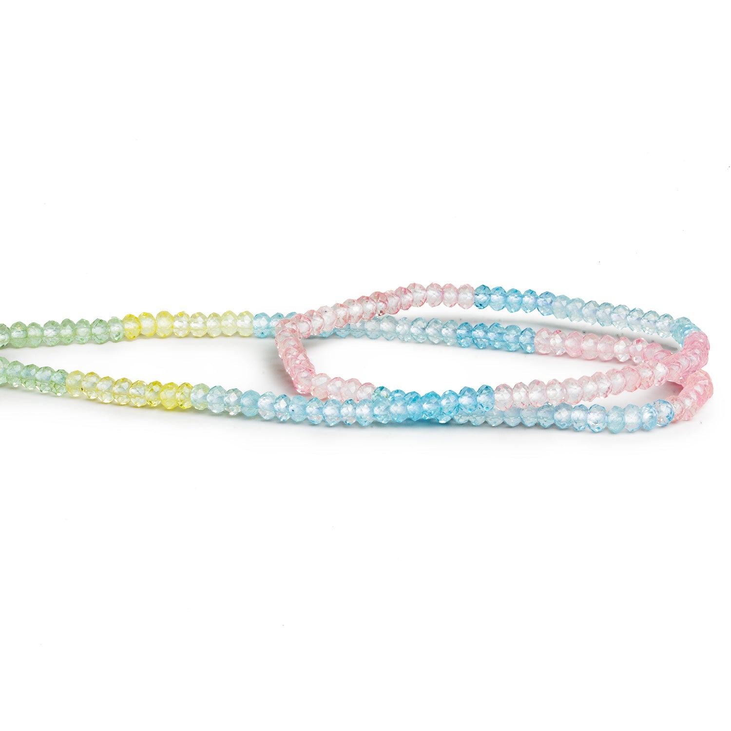 These Multicolor Quartz Microfaceted Rondelle Beads shimmer with delicate, pastel elegance. Sized at 3mm, each bead is precision-faceted to maximize sparkle, while their palette of soft pinks, icy aquas, gentle greens, and pale lemon yellows lends a refreshing and luminous quality. Their lighter tones make them versatile for airy, refined designs that feel effortlessly chic.