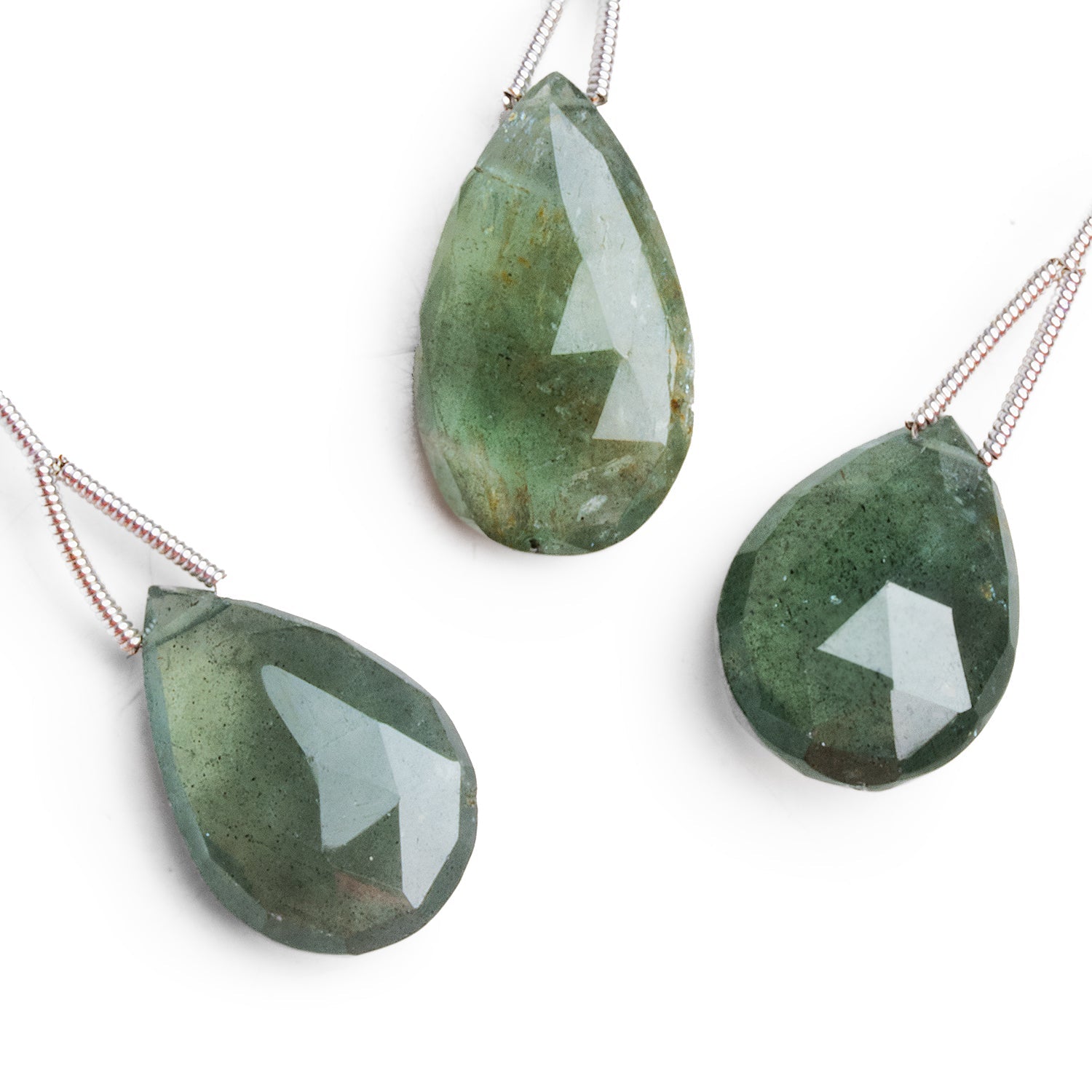 Beads average 21x14mm. These richly colored Moss Aquamarine offerings come in sizable pears of milky clarity that impart a sophisticated, yet earthy quality. These specially curated focal beads are extremely versatile and destined to dazzle in a wide range of jewelry designs from earrings to necklaces and more.
