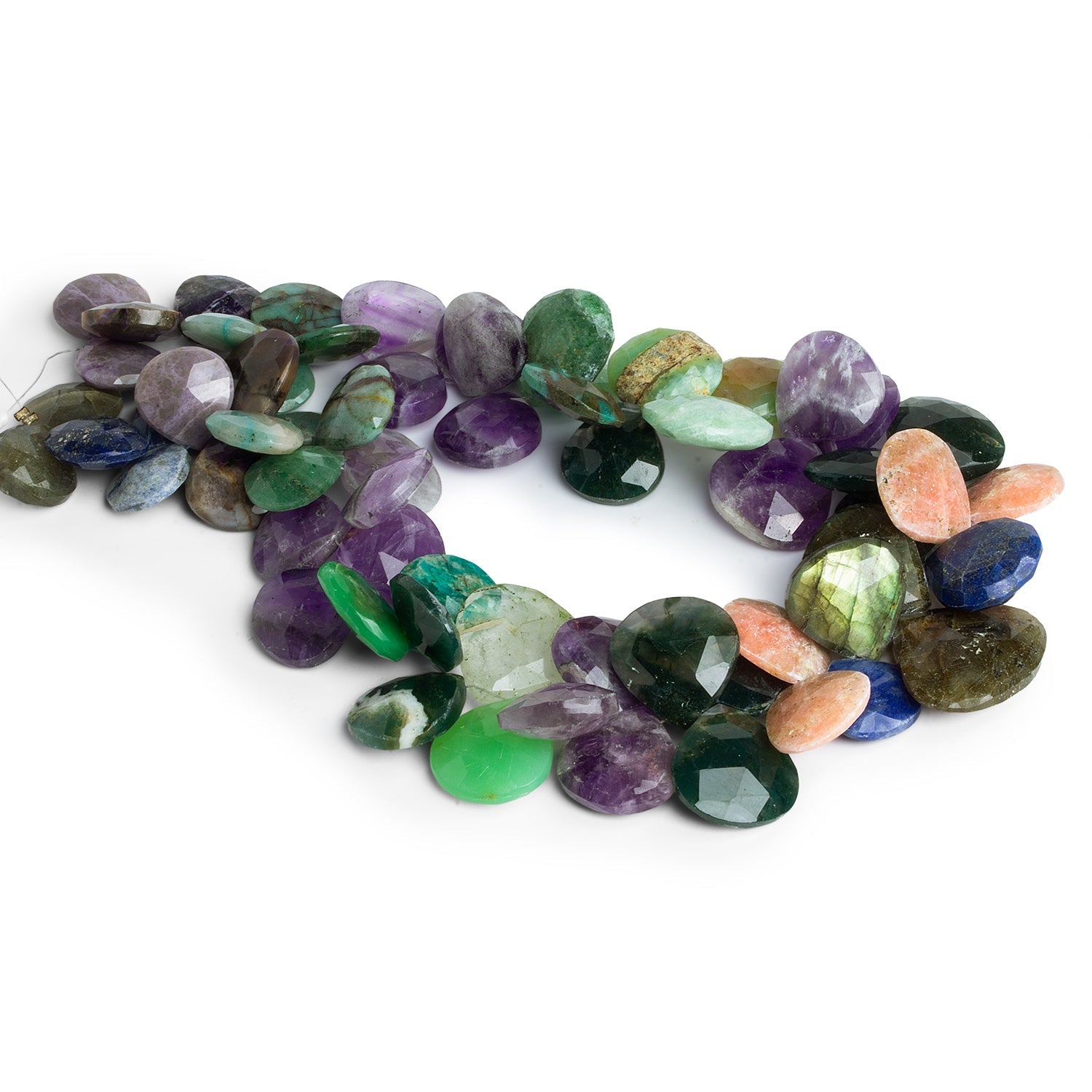Discover the bold elegance of these Multi Gemstone Faceted Heart Beads, ranging from 15mm to 26mm in diameter. Hand-selected from a wide variety of natural gemstones—including Amethyst, Green Aventurine, Labradorite, Lapis Lazuli, Chrysoprase, Sunstone, and more—each bead showcases its own unique colors, textures, and inclusions. The finely faceted heart cut enhances the stone’s natural brilliance, making these beads a stunning choice for statement jewelry designs. Their substantial size and captivating mix of hues give every piece a luxurious and artistic quality.
