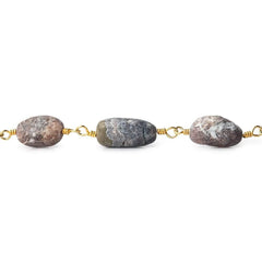 This 5.5mm Multi Gemstone Plain Round Gold Plated Chain by the foot is exquisitely crafted, featuring a range of hand-cut gemstone beads that are carefully hand-wrapped onto a chain made of brass and plated with gold. Elevate your jewelry creations with this exceptional and visually stunning chain. Due to the hand-cutting process, there may be slight variations in the size of the beads.