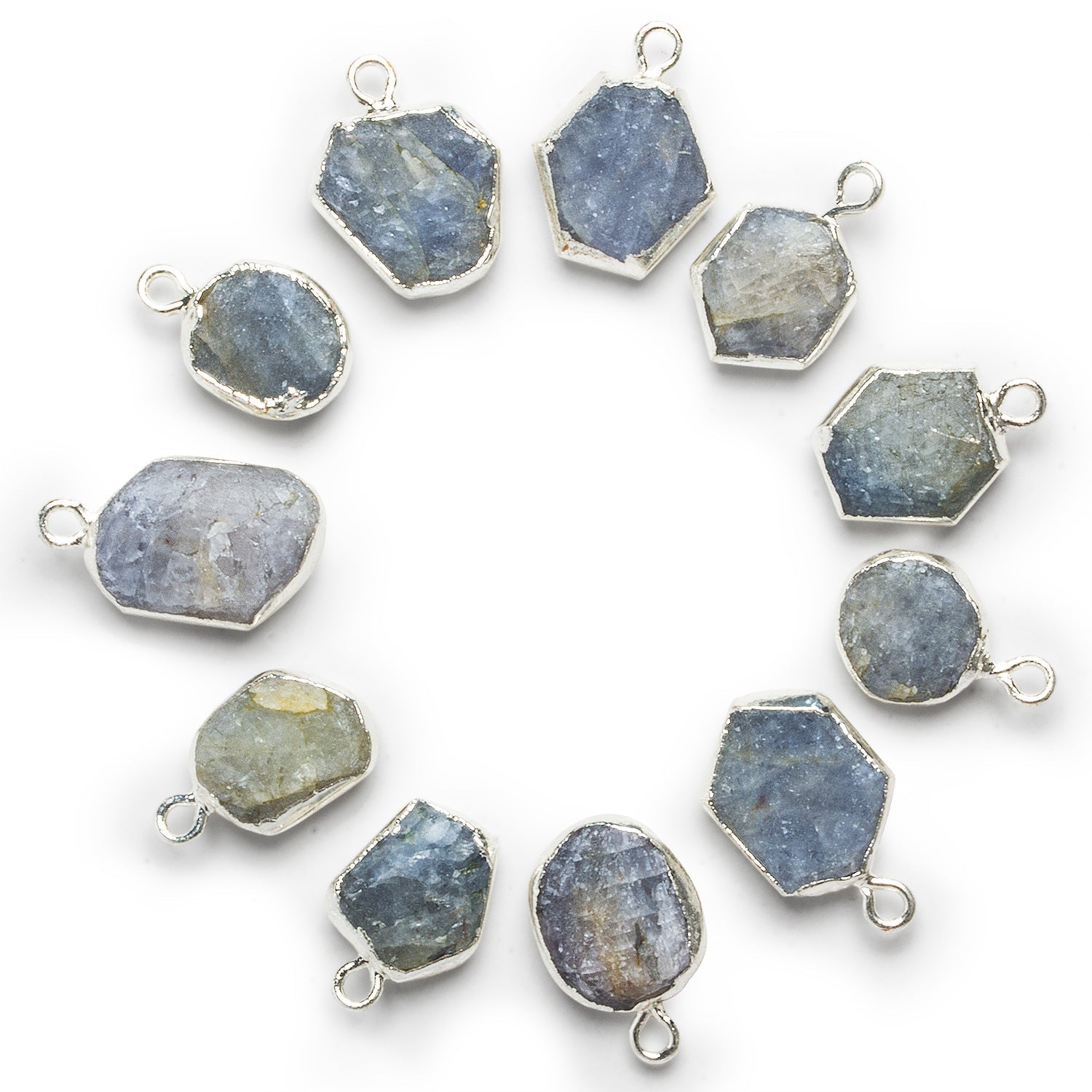 Measuring approximately 17x11mm, these pendants are sold as singles, making them perfect as stand-alone focal pieces or for incorporating into custom necklace and earring designs. The combination of sapphire’s grounding elegance and the cool metallic sheen of silver leaf ensures these pendants will bring a refined yet earthy sophistication to your jewelry creations.