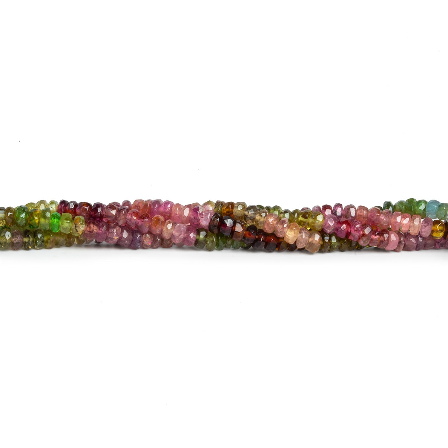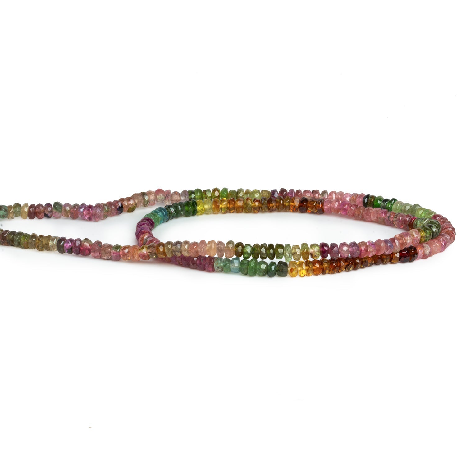These dazzling Multicolor Tourmaline Faceted Rondelle Beads bring the entire spectrum of nature’s palette to your designs. Each bead, finely cut to a petite 3mm, shimmers with lively brilliance thanks to its precision faceting. The strand is a harmonious blend of rich pinks, golden ambers, grassy greens, earthy browns, and oceanic blues, making it an exceptionally versatile choice for jewelers and artisans who appreciate variety and vibrancy.