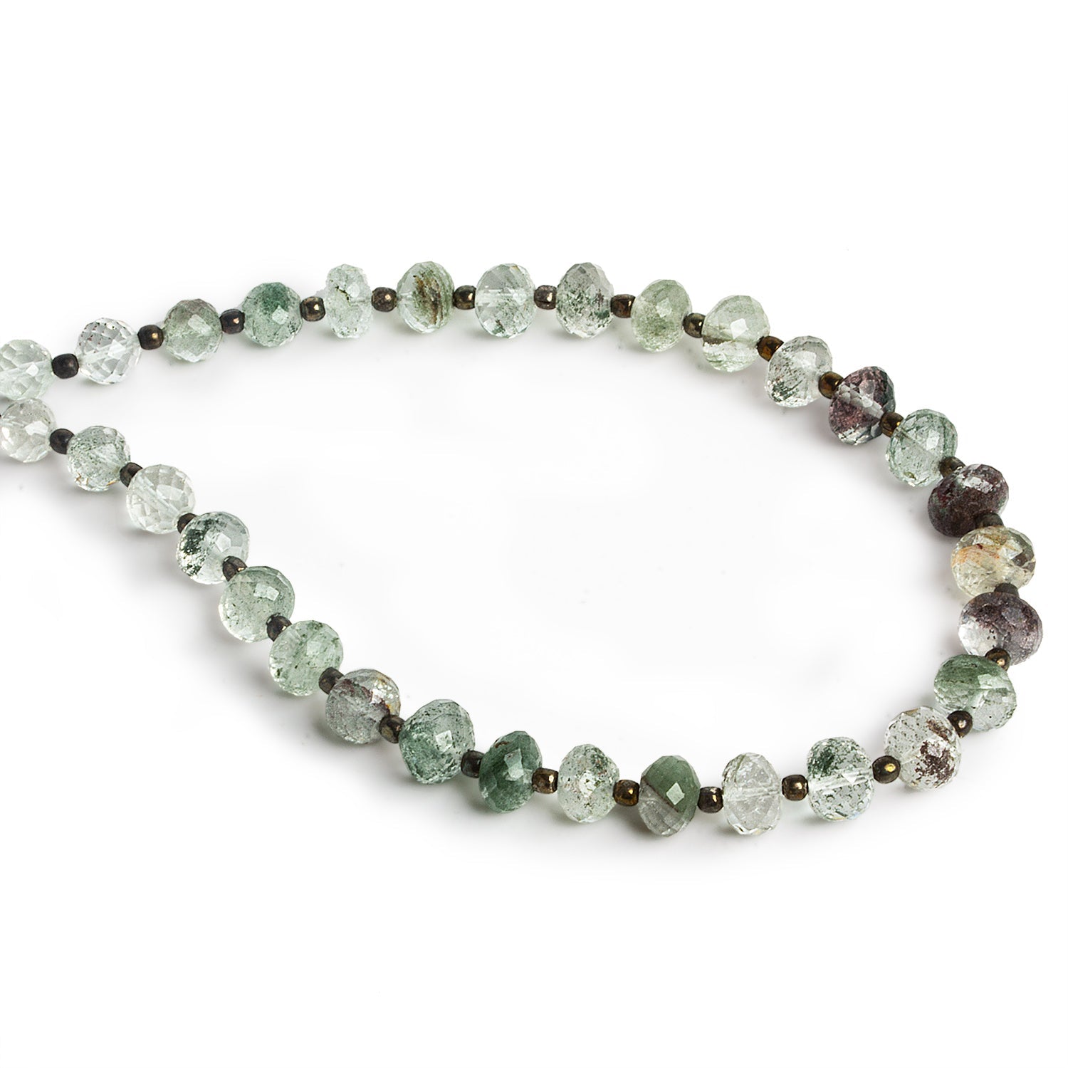 These Moss Quartz Faceted Rondelles showcase the quiet elegance of nature captured in stone. Each bead reveals delicate inclusions—soft sage greens, earthy browns, and whispery mineral threads—suspended within crystal-clear quartz, creating the look of tiny terrariums or lichen-dusted woodland glass. The 5–7mm size range provides the perfect balance of presence and refinement, with enough variation to give the strand an organic, artisan feel.
