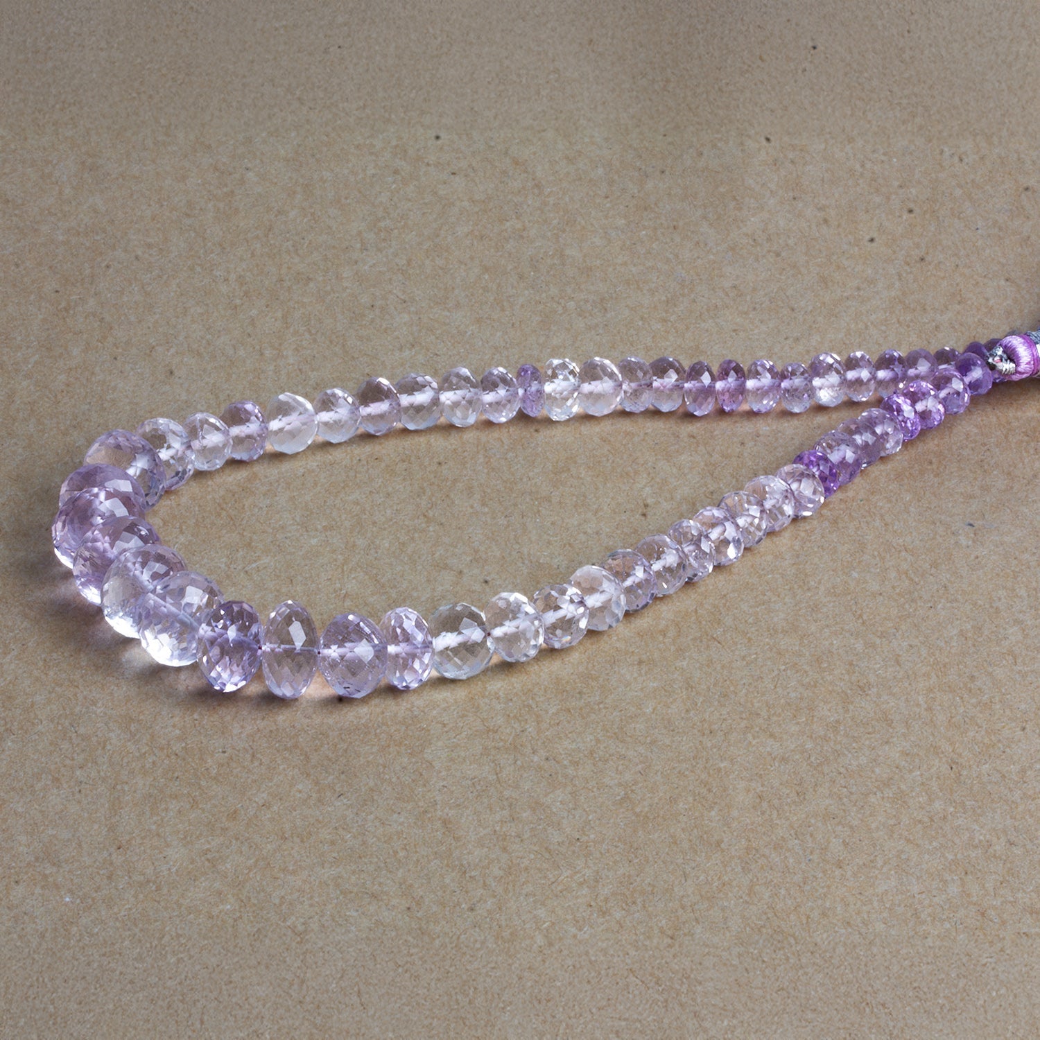 Perfect for stringing into necklaces, bracelets, or accenting earrings, these Pink Amethyst rondelles balance elegance and versatility. Their graduated sizing, ranging from 6mm to 10mm, allows for effortless graduated strands or layered designs. Pair them with silver or rose gold findings for a sophisticated finish, or combine them with Moonstone, Morganite, or White Topaz to emphasize their soft pastel tones. These rondelles embody understated luxury, making them a must-have for gemstone jewelry makers.