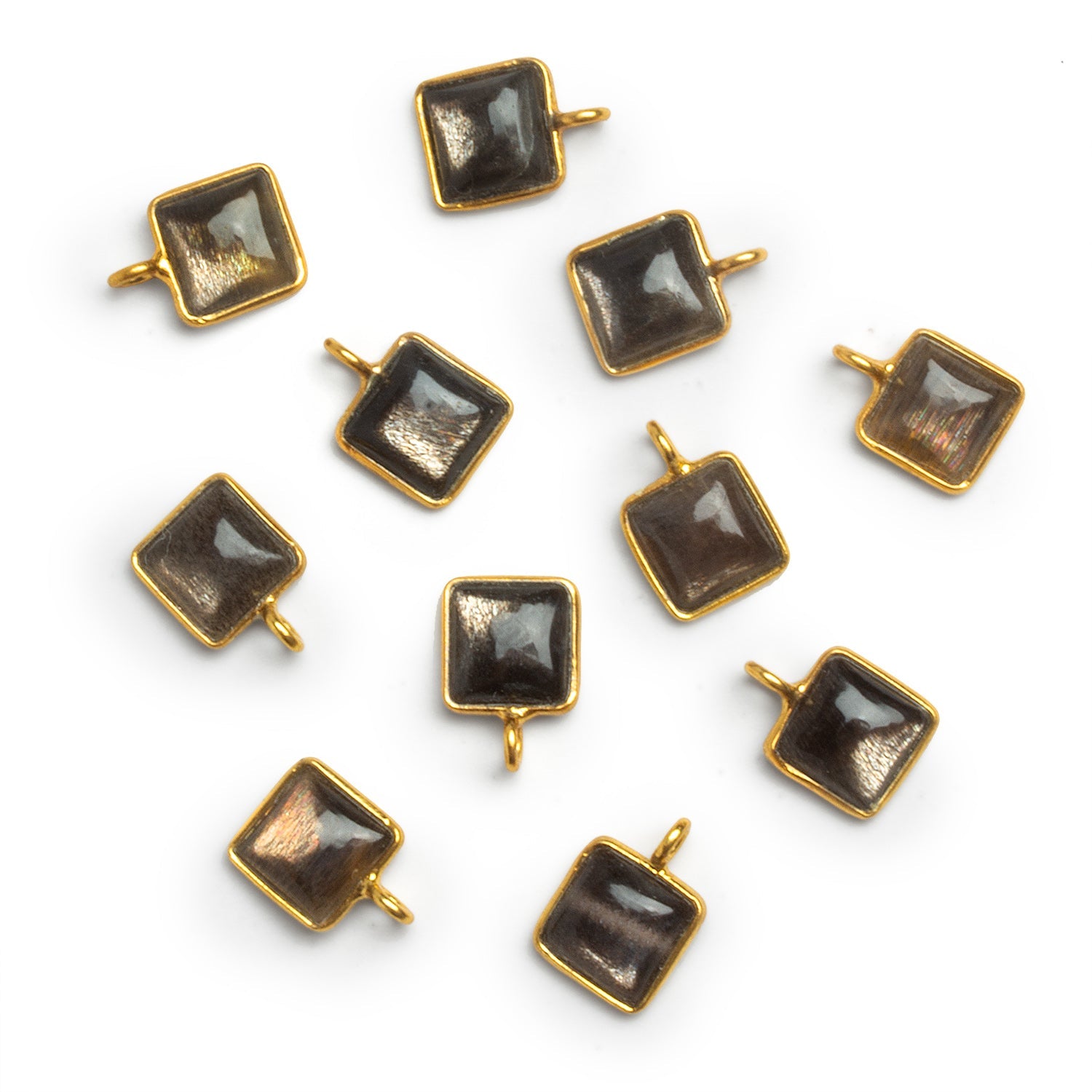 These 8mm Vermeil Bezeled Feldspar Square Pendants showcase the earthy, moody side of feldspar, with smoky brown to charcoal tones accented by subtle flashes of coppery and bronze-like sheen. Cut as smooth square cabochons, the stones display natural internal striations and reflective planes that shift as the light moves, giving each pendant depth and quiet visual intrigue. The warm vermeil bezel frames the darker stone beautifully, enhancing its natural contrast and lending a refined finish.