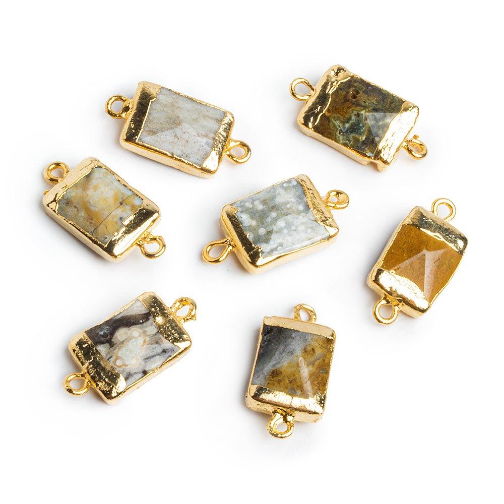 Gold Leafed Ocean Jasper Rectangle Connector 1 Piece