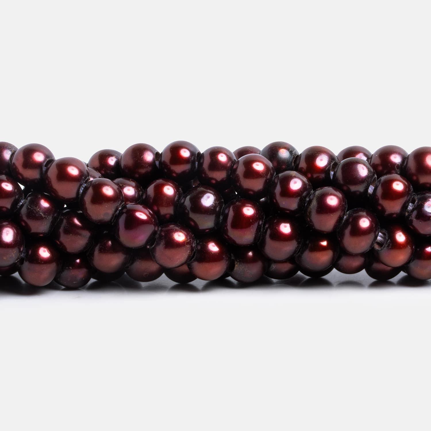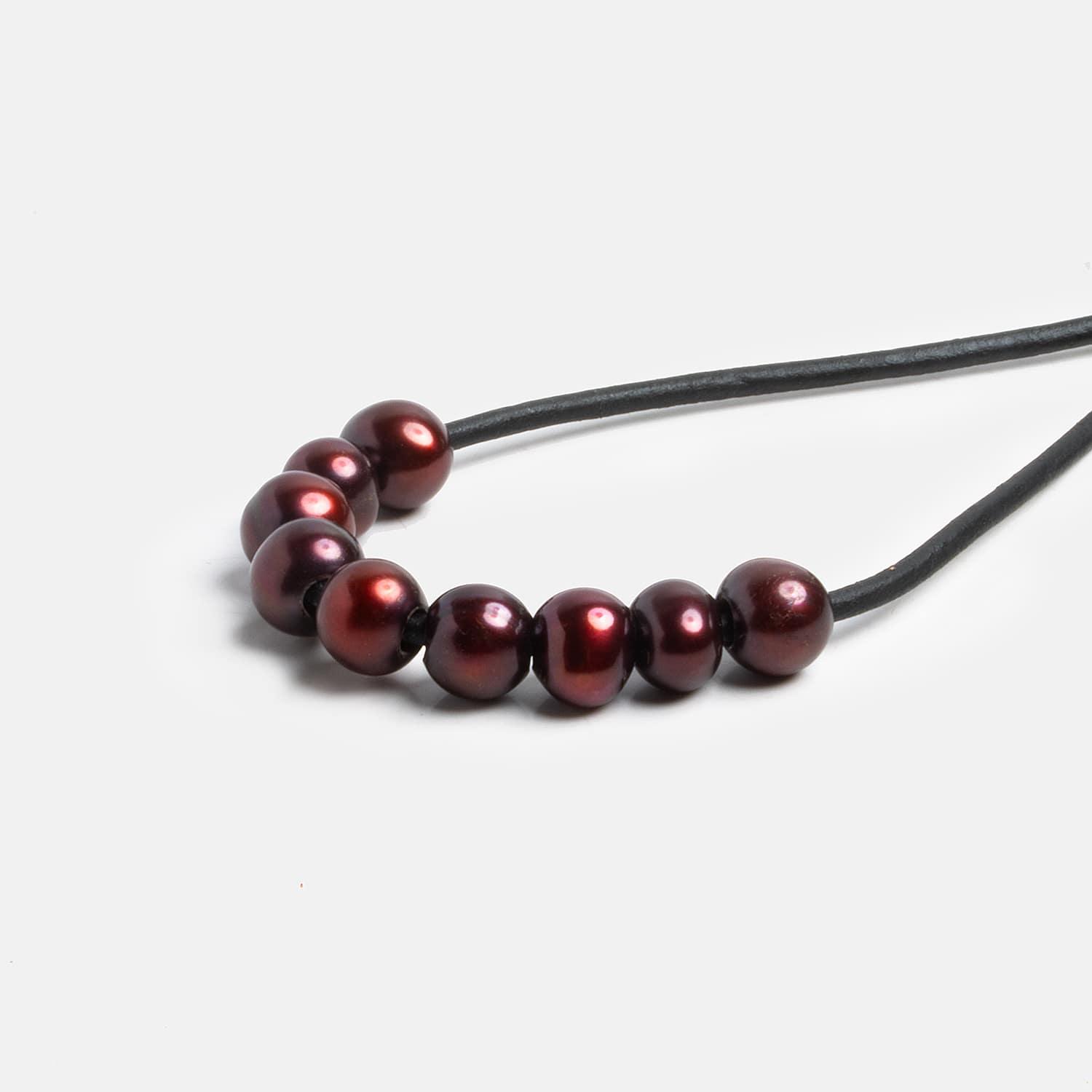 Pearls average about 7mm to 8mm in diameter. These beautiful pearls show off a rich, dark wine color palette that is highly consistent across the strand. Expect a lustrous appearance and relatively round shape consistent with an off round designation. These versatile pieces boast a 2.5mm large drill hole maximizing their use with thicker cording medium.