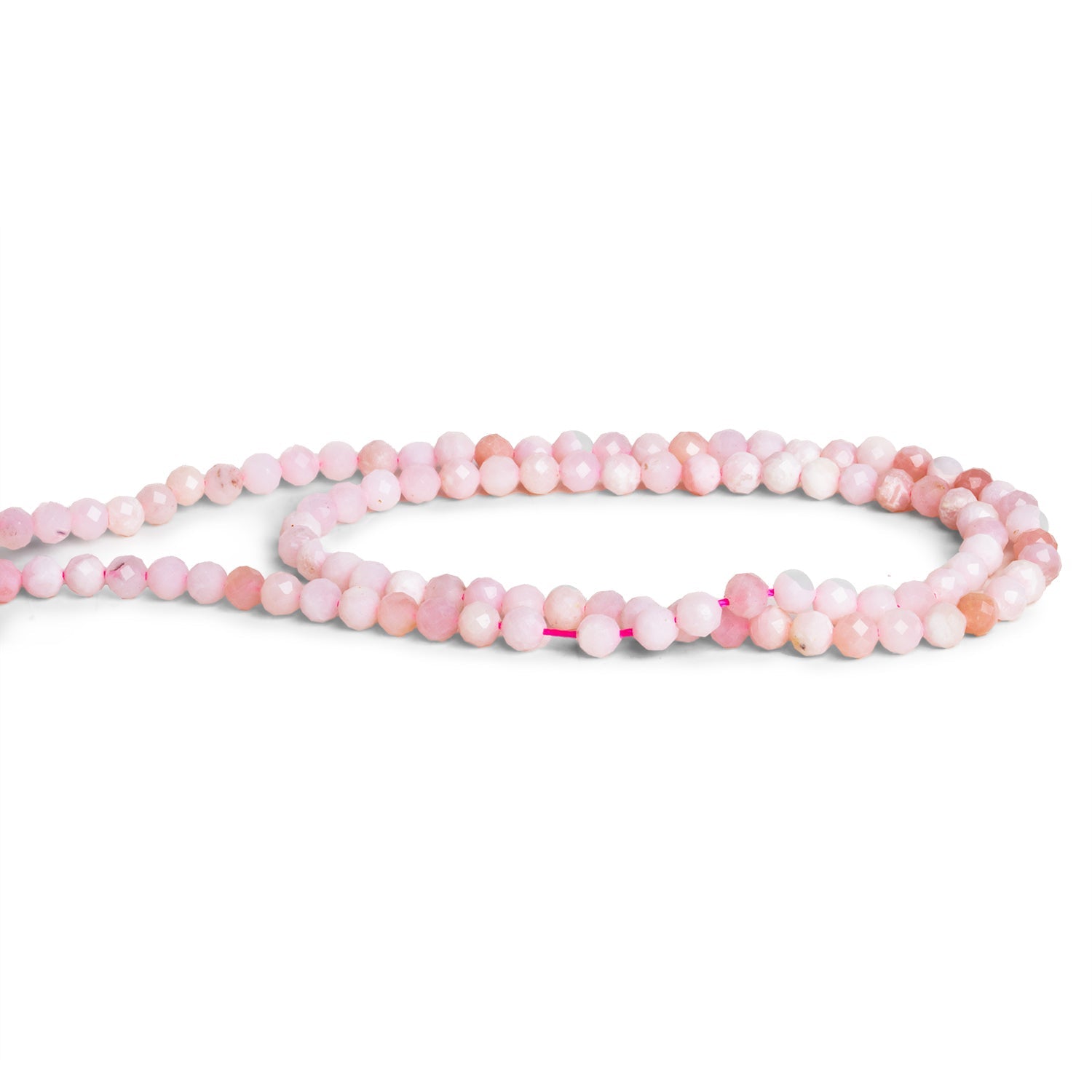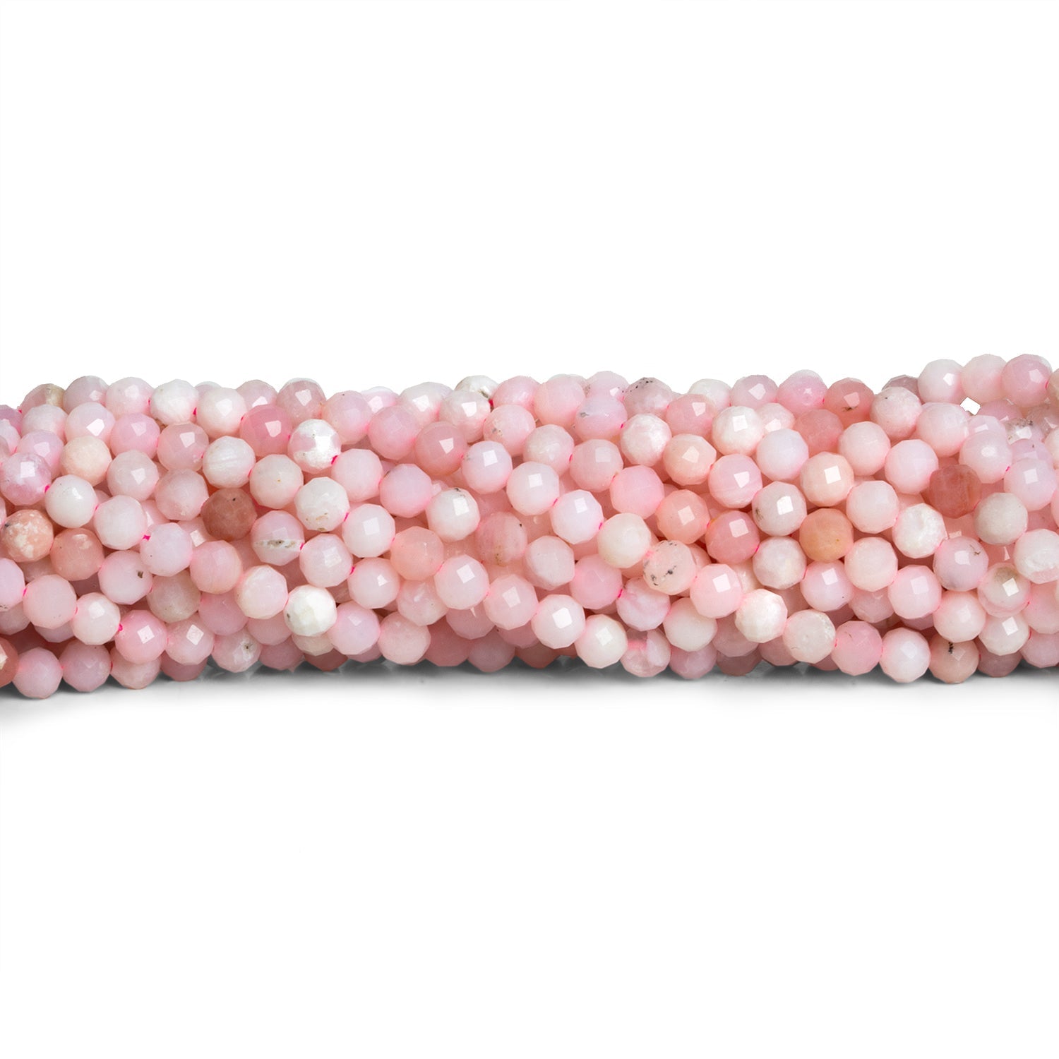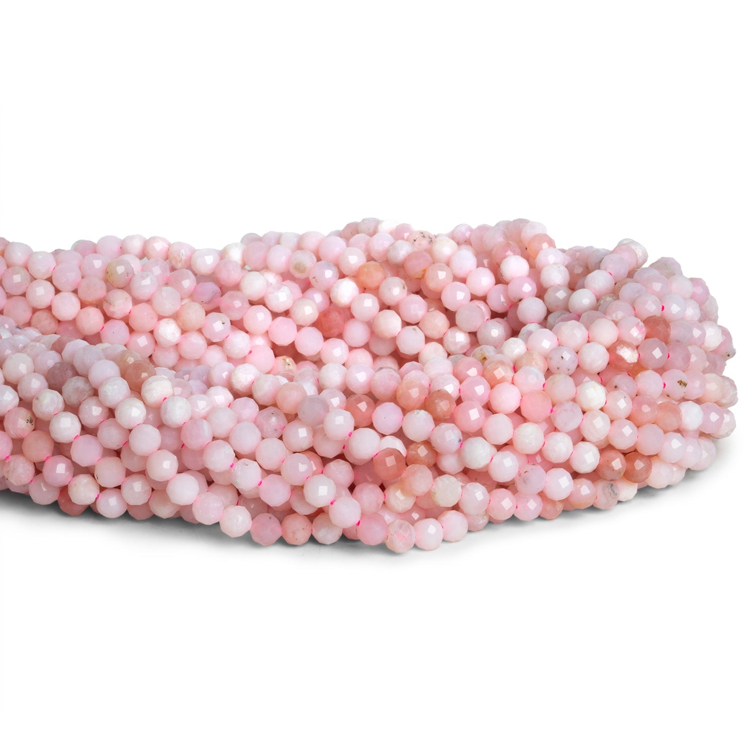 Beads measure about 4mm in diameter with a 0.5mm drill hole. These beads show off a delightful light-pink color palette that ranges from off white to richly toned. Enjoy a precision cut bead body consistent with the micro faceted style that imbues these strands with a thorough sparkling gleam. Fans of Pink will adore these Pink Opal pieces, ideal for use in necklaces, dainty earrings, bracelets and much more!