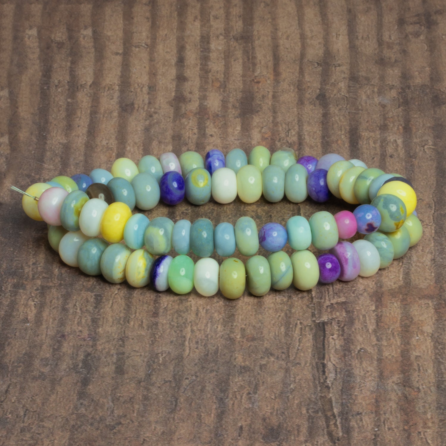 Beads measure about 7mm to 9mm in diameter with a 0.5mm drill hole. These curated opal strands feature a colorful combination of yellows, greens, blues, pinks and more. Expect a Springy and contrast-laden range of tones perfect for use in everything from necklaces to earrings and bracelets.
