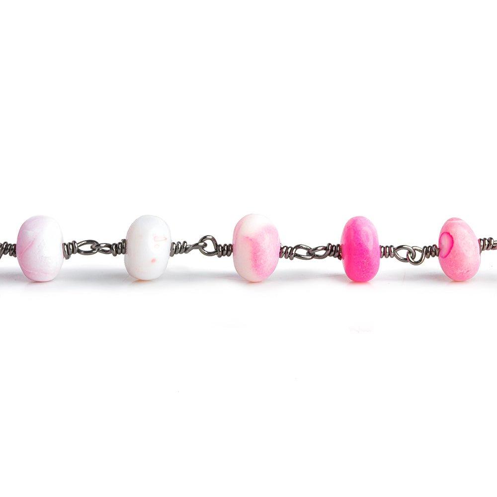 Pink Opal Rondelle Black Gold Chain by the Foot 25 pieces