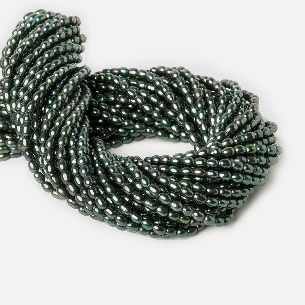 These 6x4mm blue green fresh water pearls feature a 1.5mm large hole and beautiful luster. Perfect for creating sophisticated earrings, necklaces, and more, each 15-inch strand contains 60 beads. These oval-shaped pearls will be a luxurious addition to your jewelry-making projects.