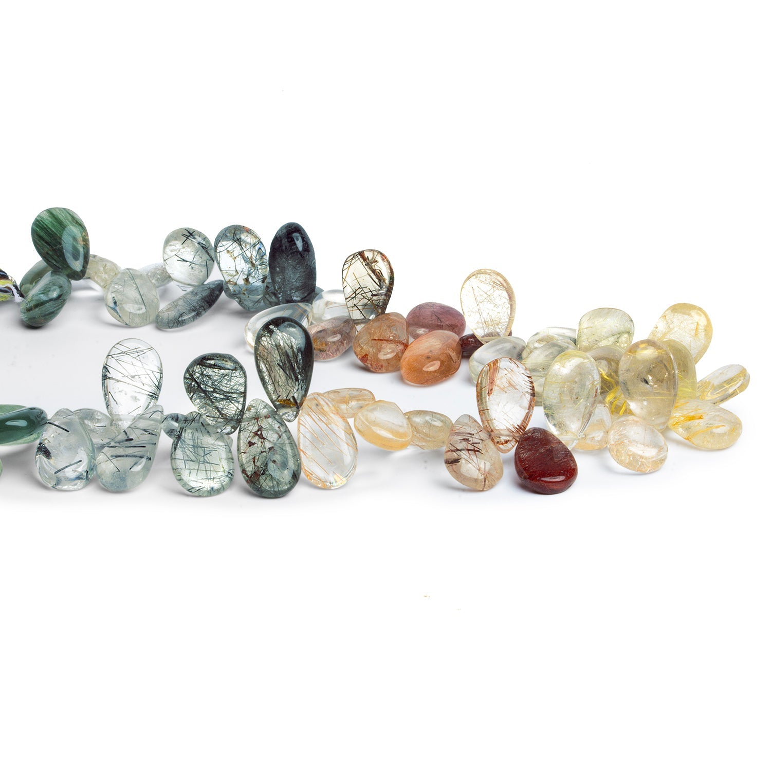 These Sagenitic Quartz Plain Pear Beads feature an exquisite mix of earthy and ethereal tones, with colors ranging from soft greens and warm ambers to rich rusts and golden honey. Each bead showcases the distinctive needle-like inclusions that define sagenitic quartz, creating a natural tapestry of fine lines and textures suspended within the transparent to translucent body. The pear-shaped silhouette, varying from approximately 10x7mm to 13x8mm, adds a graceful, organic drop that works beautifully for elegant focal points, clustered accents, or flowing jewelry designs.