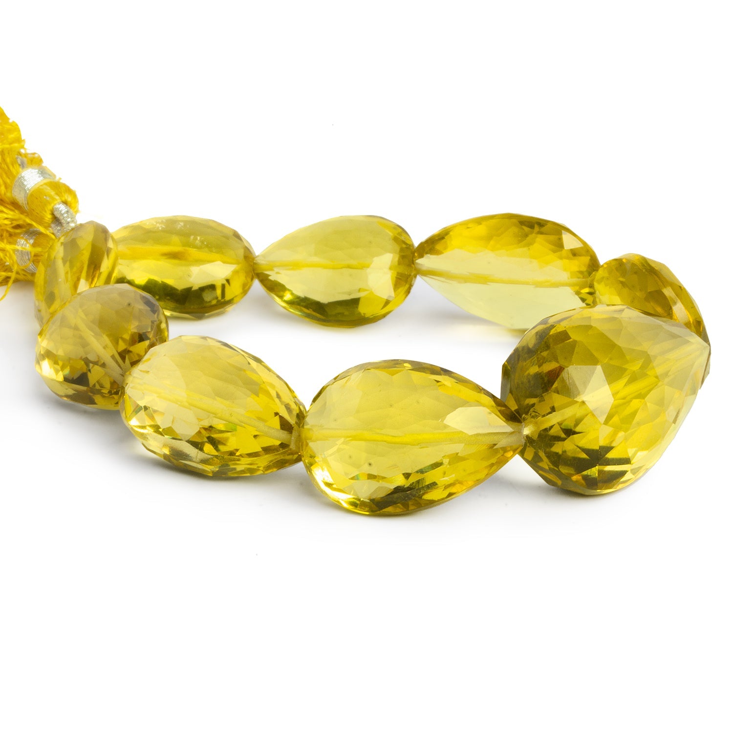 Radiant and bold, these Lemon Quartz Faceted Pear Beads range from a generous 20x15mm to an impressive 31x20mm, offering a striking presence for statement designs. Their vibrant golden-yellow hue glows with an inner brilliance, while the precision faceting enhances the natural clarity and depth of the quartz, creating a dazzling play of light with every movement.