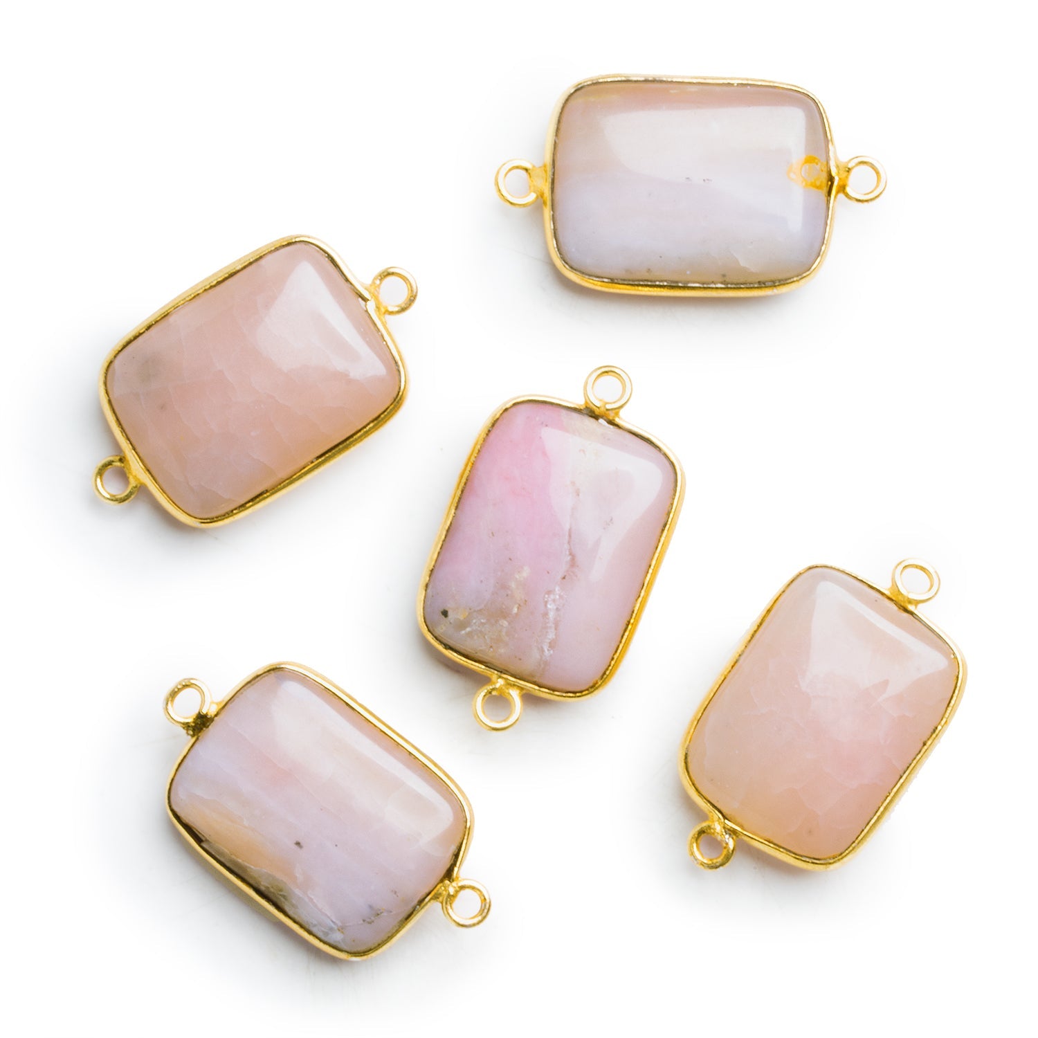 Beads measure about 28x16mm. These stunning, thick rectangle connectors look great enveloped in our signature vermeil bezeling. Expect a subdued pink tone suitable for inclusion in more subtle or warm toned designs. Our connectors are perfect for bringing together a wide variety of jewelry design concepts, from necklaces to earrings and much more.